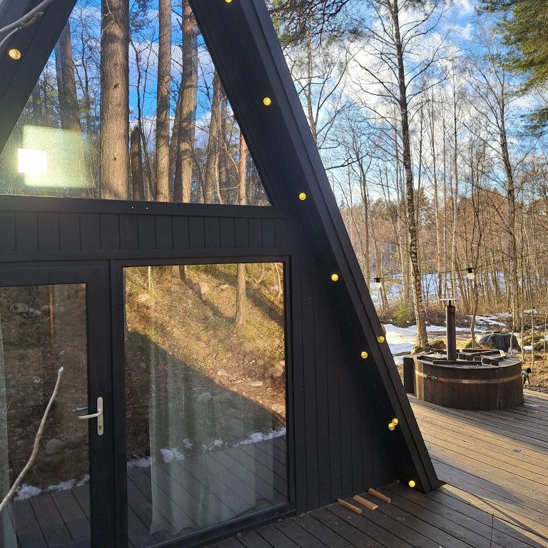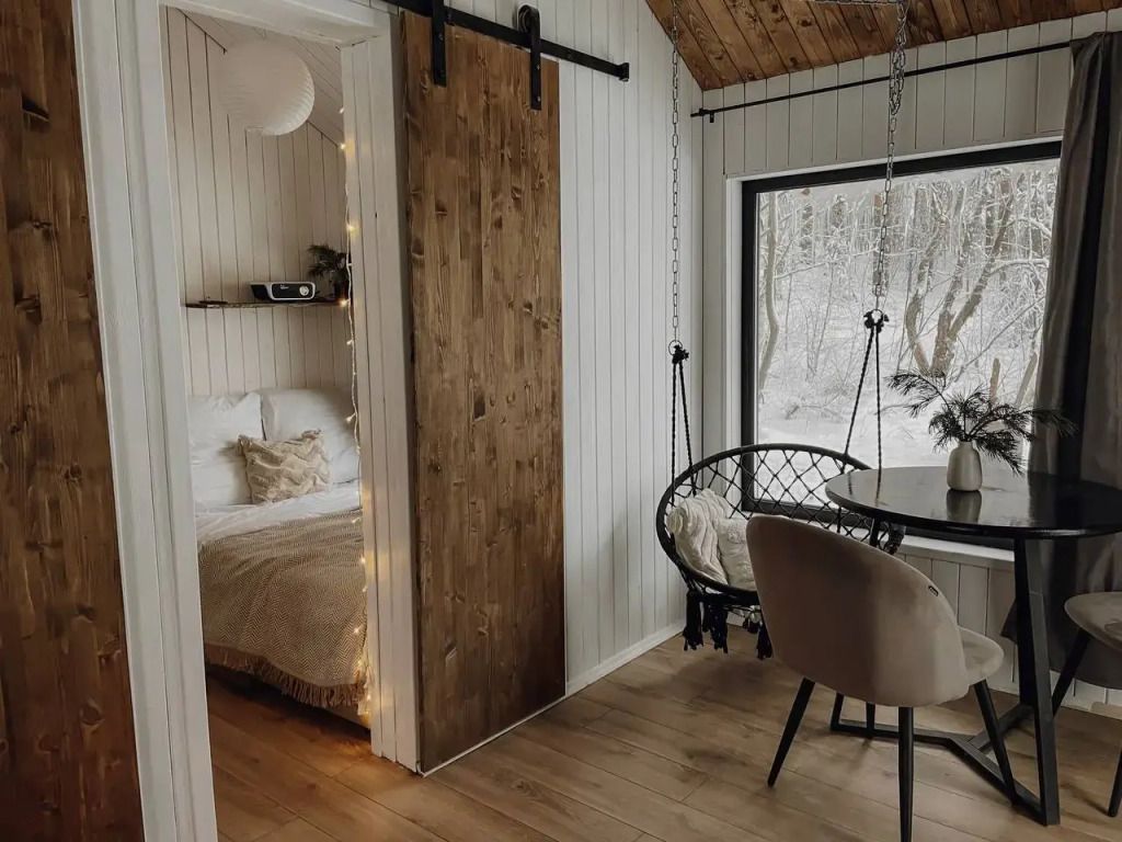 Двухместный коттедж с красивым видом из окна двуспальная кровать