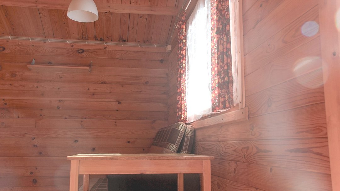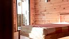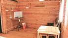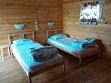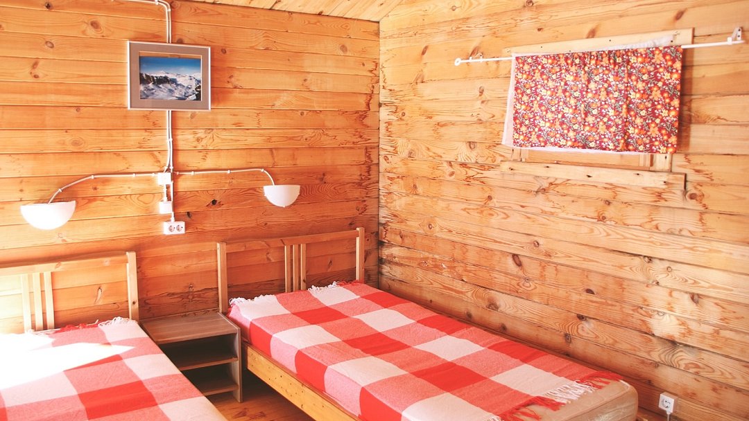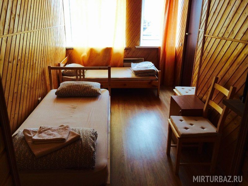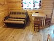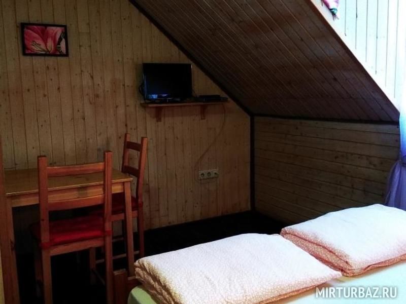 3 односпальных кровати, санузел в срубе, телевизор, столик, стулья.