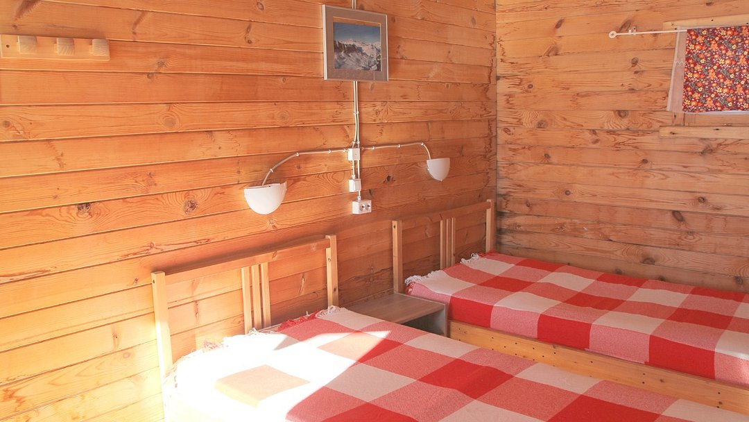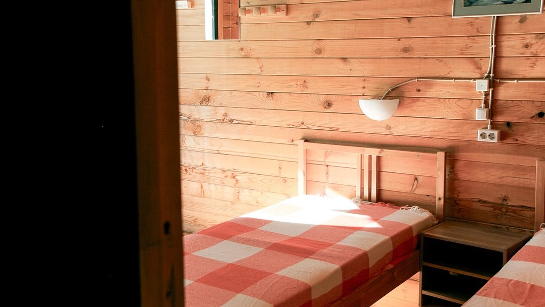 Телевизор со спутниковыми телеканалами, утюг, отопление, туалет, душ, средства гигиены, две односпальных кровати, постельное белье, полотенца.