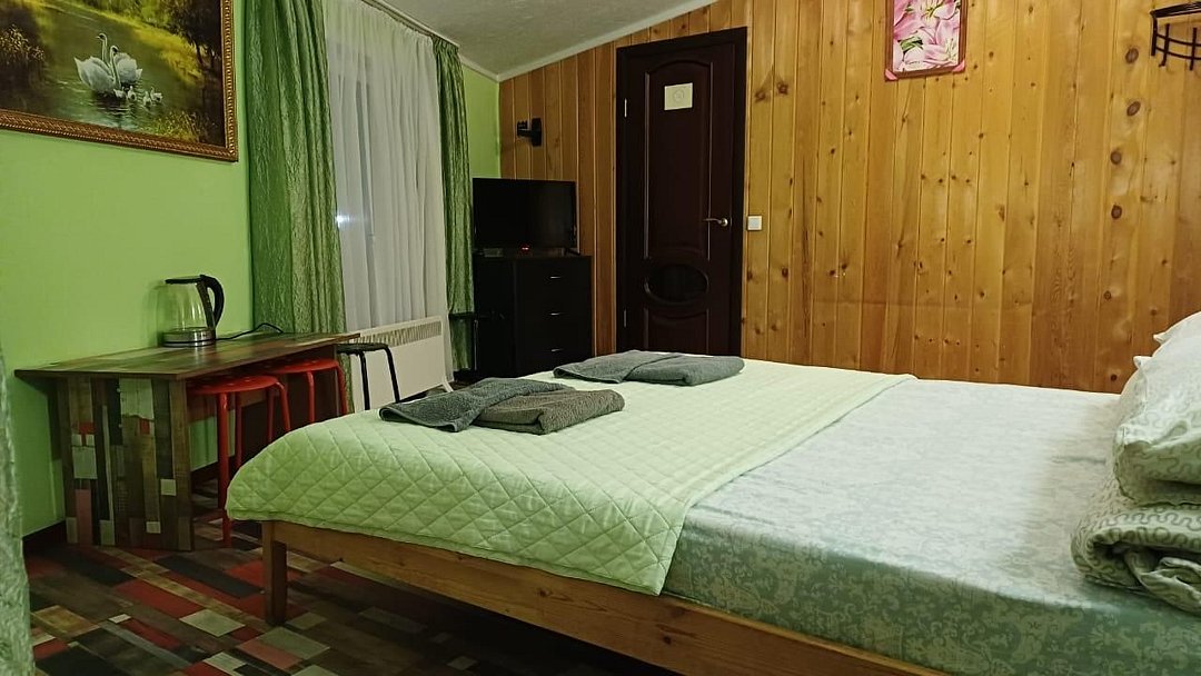 Идеальный выбор для романтического отдыха. Наслаждайтесь уютом в просторной двуспальной кровати и живописным видом из окна. В номере есть все необходимое для комфортного отдыха.