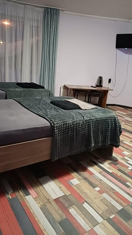 Просторный номер для комфортного размещения до четырех человек. В номере установлены три раздельные кровати и раздвижной диван. Для вашего удобства есть телевизор, холодильник и собственная ванная комната.