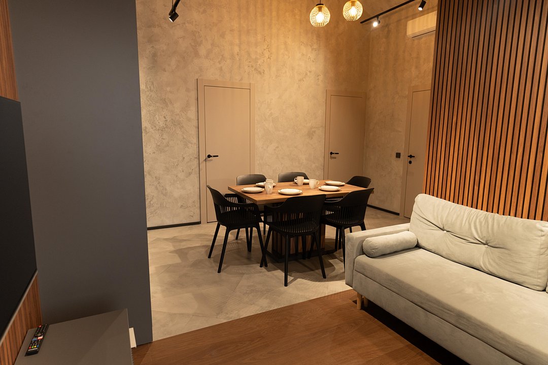 Единое пространство, зонированное на уютные спальни и гостевую зону.