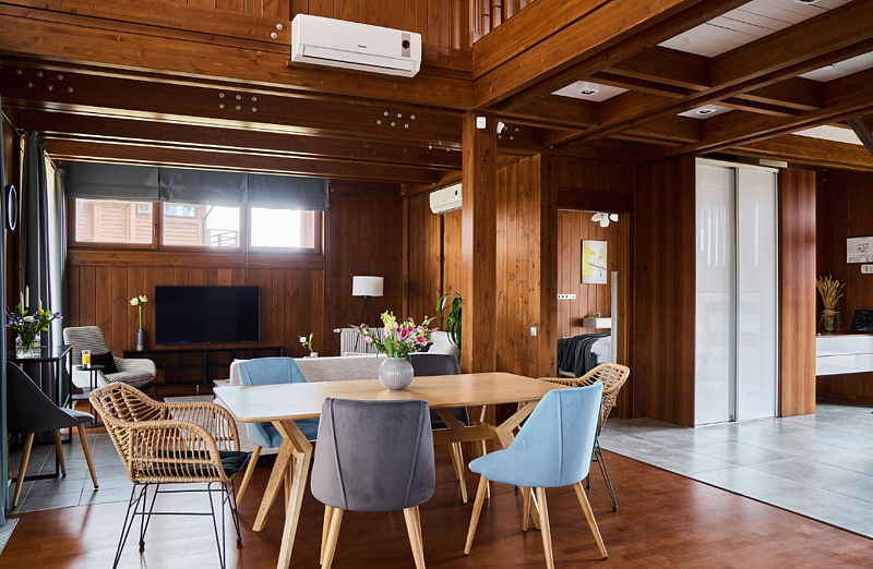Уютный двухэтажный номер, где каждая деталь продумана для вашего комфорта. Большие окна наполняют комнату мягким естественным светом, где центральное место занимает просторная, удобная кровать с яркими декоративными акцентами. Удобная лестница ведет на второй уровень, где вас ждет дополнительное пространство для отдыха и уединения. Светильники с современным дизайном добавляют особый шарм и делают освещение мягким и расслабляющим. Оснащение номера: - Двуспальная кровать - Дополнительное спальное место на втором уровне с двуспальной кроватью - Кондиционер - Большие окна с видом на сад - Современные дизайнерские светильники Здесь вы найдете все необходимое для комфортного семейного отдыха!Услуги и удобства