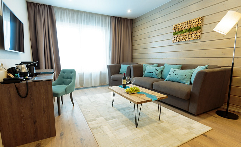 Идеально подходящий для расслабления и отдыха, этот номер сочетает в себе естественные тона и комфортабельную мебель, создавая атмосферу спокойствия и гармонии: - Гостиная зона с диваном и комфортным рабочим местом. - Спальня с большой двуспальной кроватью и выходом на приватную террасу. - просторная ванная комната с душем и ванной - идеальное место, чтобы расслабиться после насыщенного дня и устроить себе небольшой спа-уход. Оснащение номера: - Уютная гостевая зона с диваном и креслом - Современный телевизор с плоским экраном - Яндекс-станция и VR-очки - Рабочий стол и стул - Кофе-машина, чайник и набор для приготовления чая и кофе, - Двуспальная кровать - Просторная ванная комната - Терраса - Халаты и косметический набор Пусть ваш отдых будет комфортным и спокойным!Услуги и удобства
