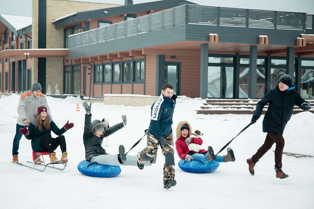 - С тюбингом и ватрушками