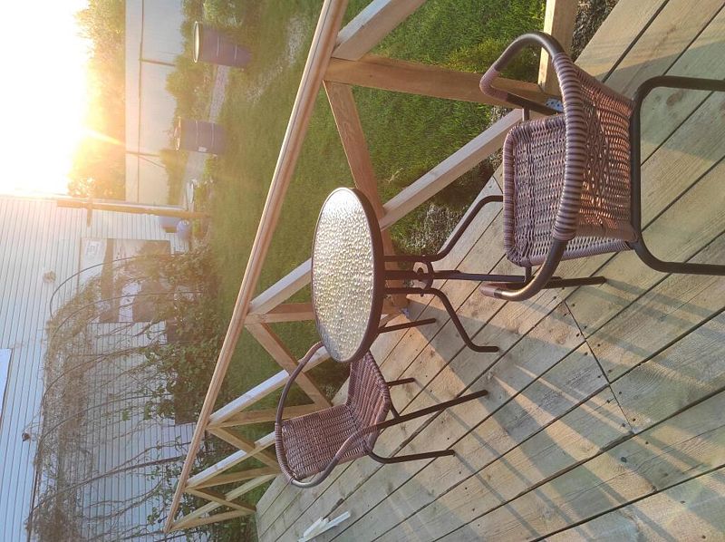 Уютная комната на 2 этаже с большим светлым окном. Солнечная сторона в послеобеденное время. В хорошую погоду — вы будете наблюдать лучшие закаты в окрестности. Одна из стен декорирована в стиле эпохи динозавров. В комнате 2 односпальные кровати с постельным бельём, банными полотенцами и прикроватными ковриками. Также среди обстановки есть маленький столик, стулья, скамеечка для обуви или сумок. Электрообогреватель и вентилятор (выдаются по необходимости).