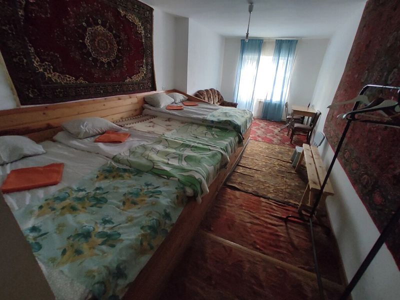 Просторная комната для настоящих путешественников. Вместимость - до 7 человек. В комнате 4 односпальные кровати с возможностью установления раскладного кресла. Есть стол, тумбочки, скамейка.