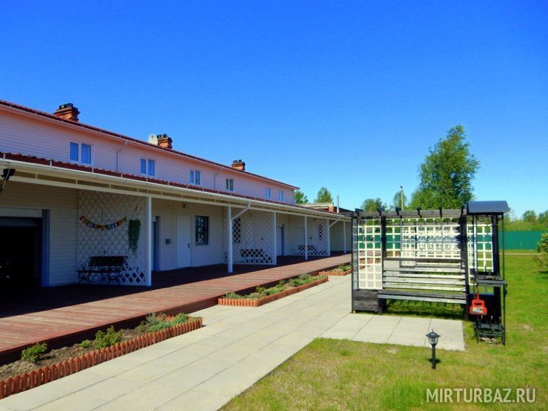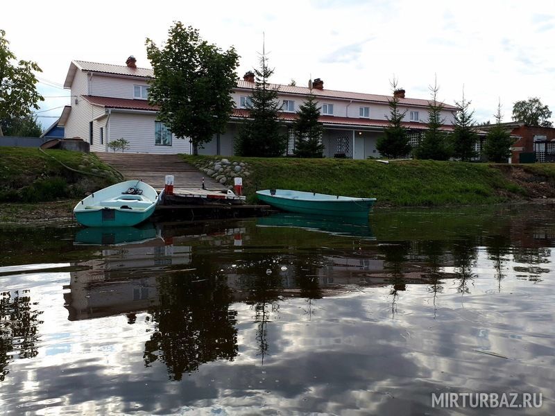 Четыре двухэтажных коттеджа, объединённых под одной крышей, но зонированных между собой. У каждого коттеджа (номера) своя зона отдыха — отдельная крытая терраса, отдельная небольшая беседка и мангал, индивидуальный гаражный ангар для лодки, отдельный вход с улицы и с внутренней территории комплекса. Wi-Fi интернет.