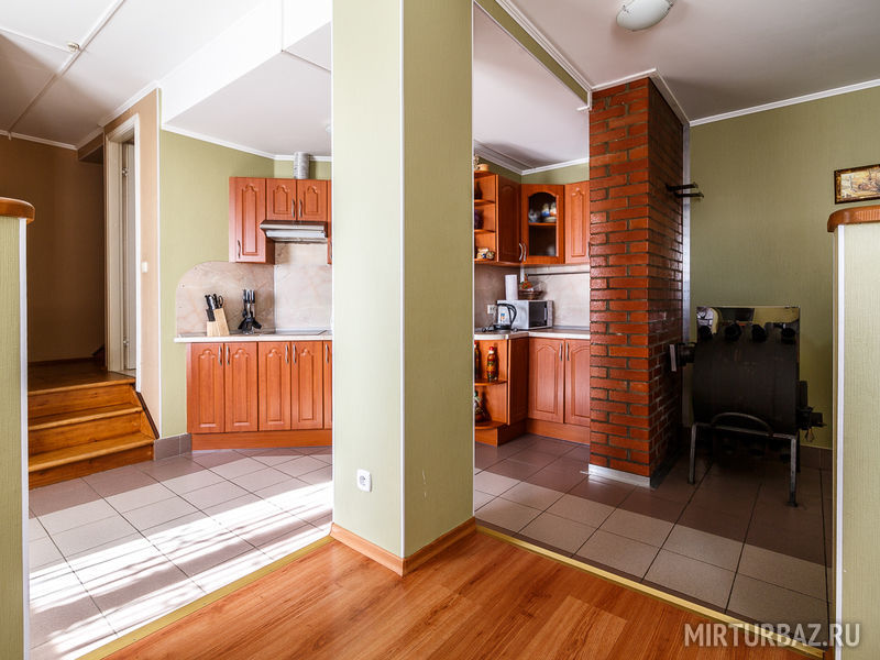1 этаж каждого номера — каминный зал, обеденная зона, полноценная кухня, зона отдыха с ЖК-телевизором. Спальные места. Душ, всегда горячая вода, санузел.