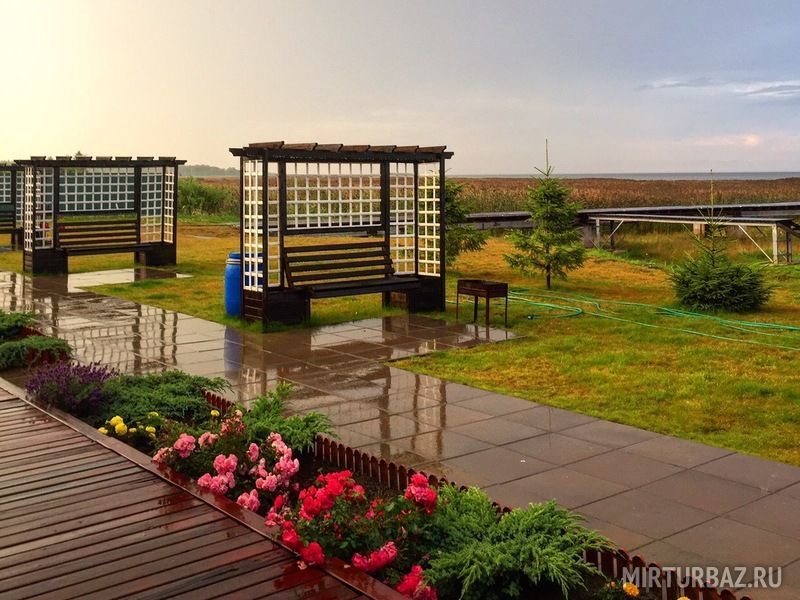 У каждого коттеджа(номера) своя зона отдыха - отдельная крытая терраса ,отельная небольшая беседка и мангал, индивидуальный гаражный ангар для лодки, отдельный вход с улицы и с внутренней территории комплекса!