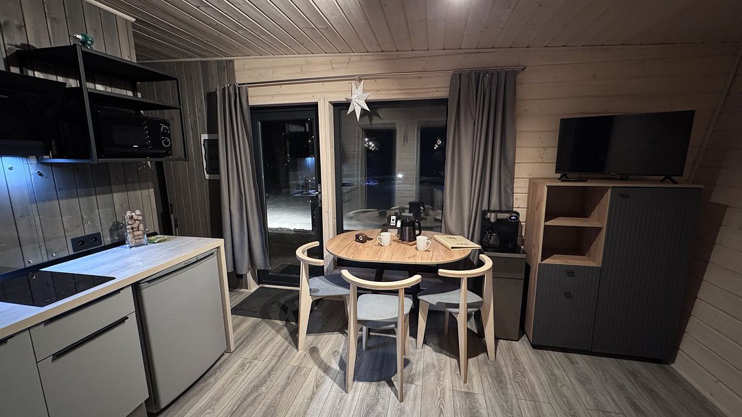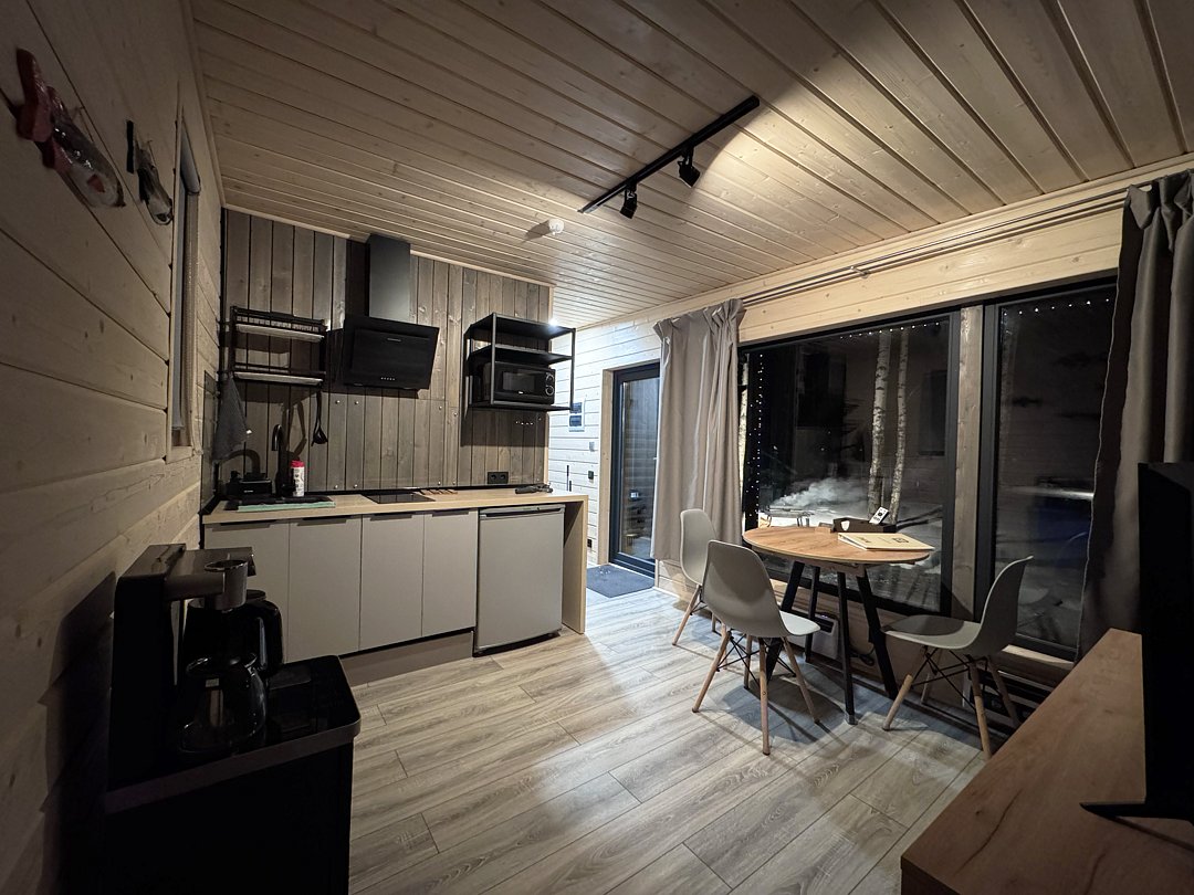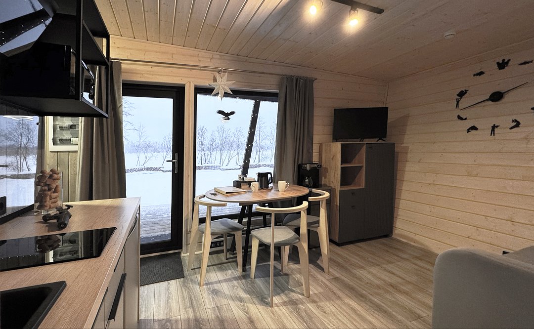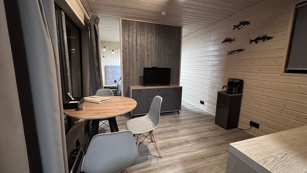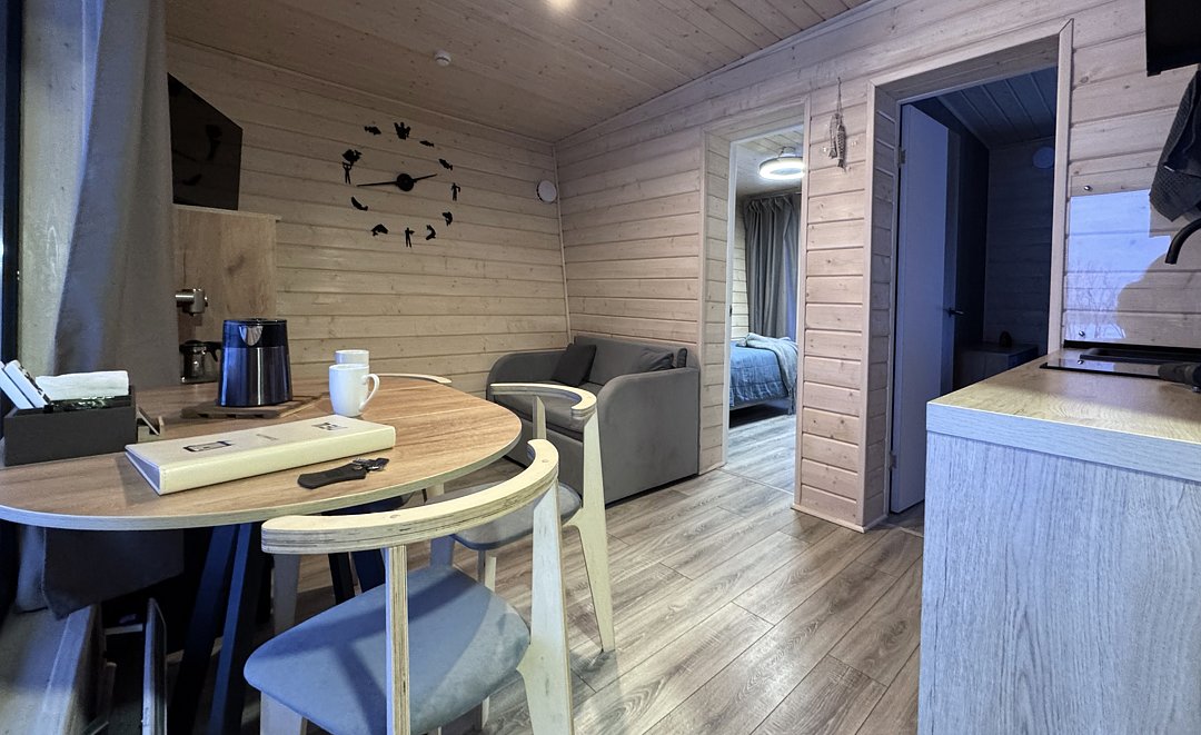 К услугам гостей современные и комфортабельные домики двух типов: уютные студии и просторные двухкомнатные семейные номера. Каждый домик полностью оборудован для комфортного проживания и включает в себя мини-кухню, душ, туалет и спальню. На кухне есть все необходимое: микроволновая печь, плита, кулер с питьевой водой и полный набор посуды. Гостям предоставляются постельное белье, средства личной гигиены и фен. Рядом с каждым домиком обустроена уличная терраса со столиком и креслами.