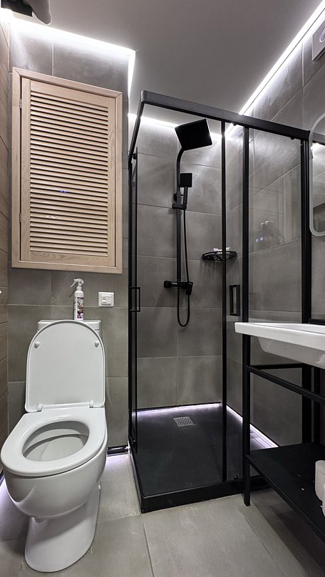 - душ (душевые принадлежности, фен),