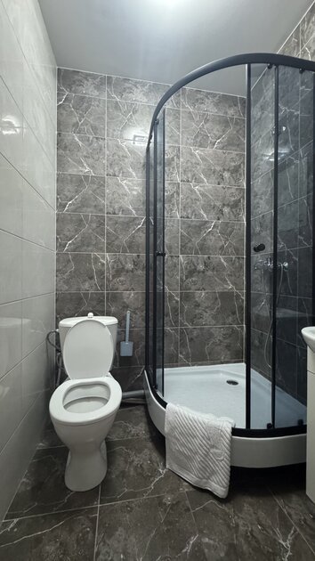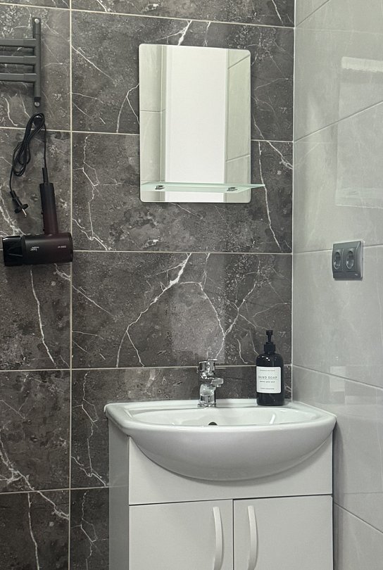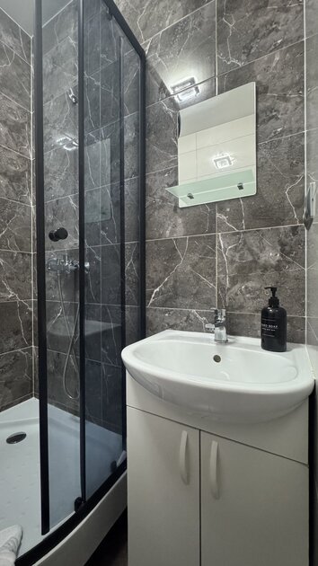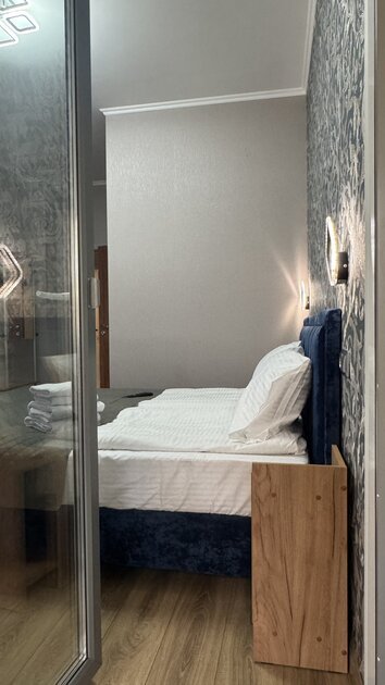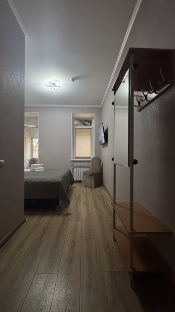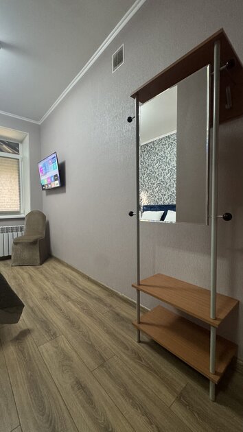Удобства в номере: двуспальная кровать, телевизор, зеркало, мини‑холодильник, электрический чайник, небольшой набор посуды, собственный душ и туалет. Дополнительно: бесплатная стиральная машина в общем доступе, удобная парковка рядом с домом.