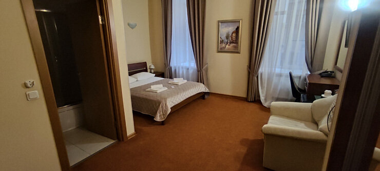 Здание гостевого дома недавно отреставрировано, комнаты оснащены все необходимым для комфортного проживания. Отдельного внимания достойна лестница в парадной .
