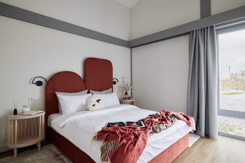 В доме две спальные комнаты с удобными двуспальными кроватями. Возможность размещения дополнительных спальных мест на диване.