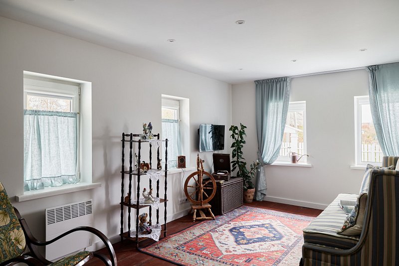 В доме с комфортом могут разместиться от 4 до 6 человек. А на печке - дополнительное спальное место для ребенка.