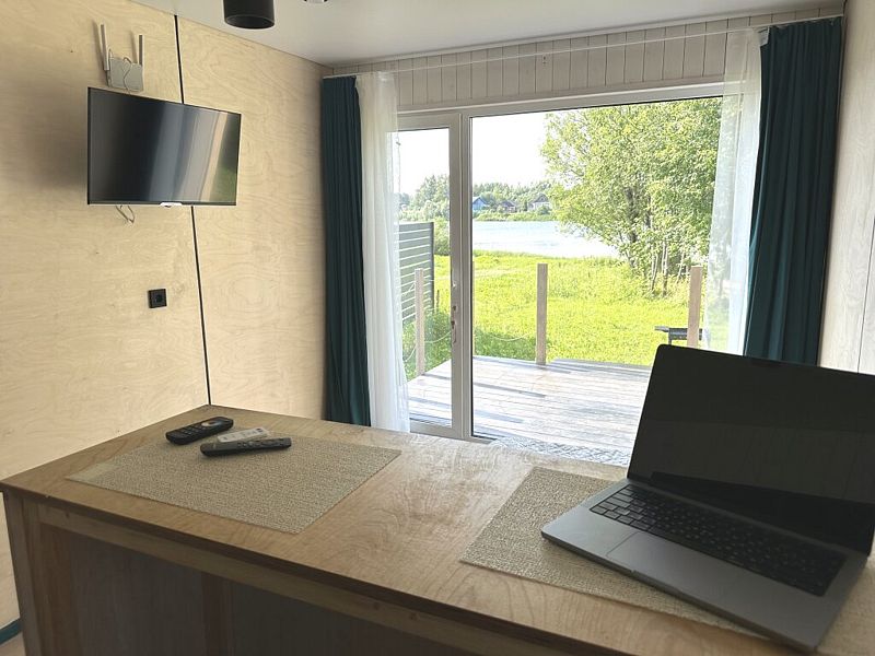 Дом с двухспальной кроватью. Свой пирс на берегу реки, своя зона барбекю. Быстрый интернет. Все удобства для комфортного проживания.