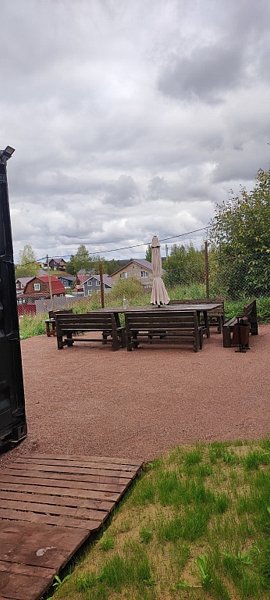 На участке есть парковка на 4 автомобиля, баня, крытая беседка с мангалом, решётки, шампура. Рядом с беседкой стоит стол со стульями под зонтом для летних посиделок.