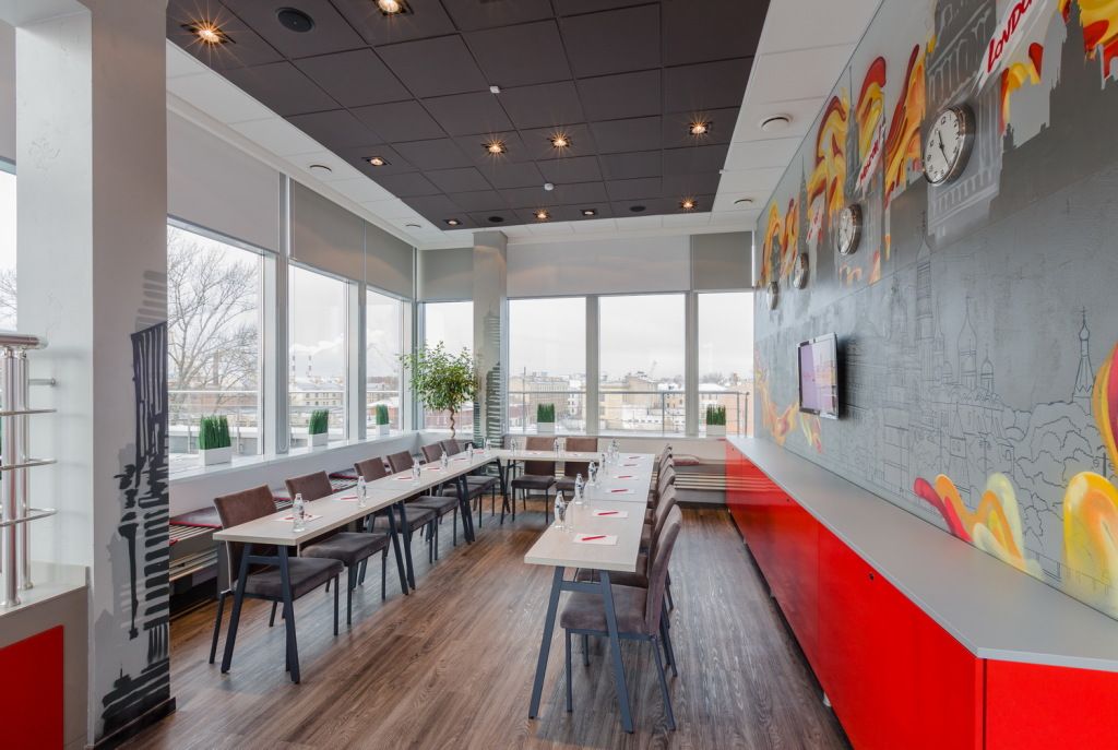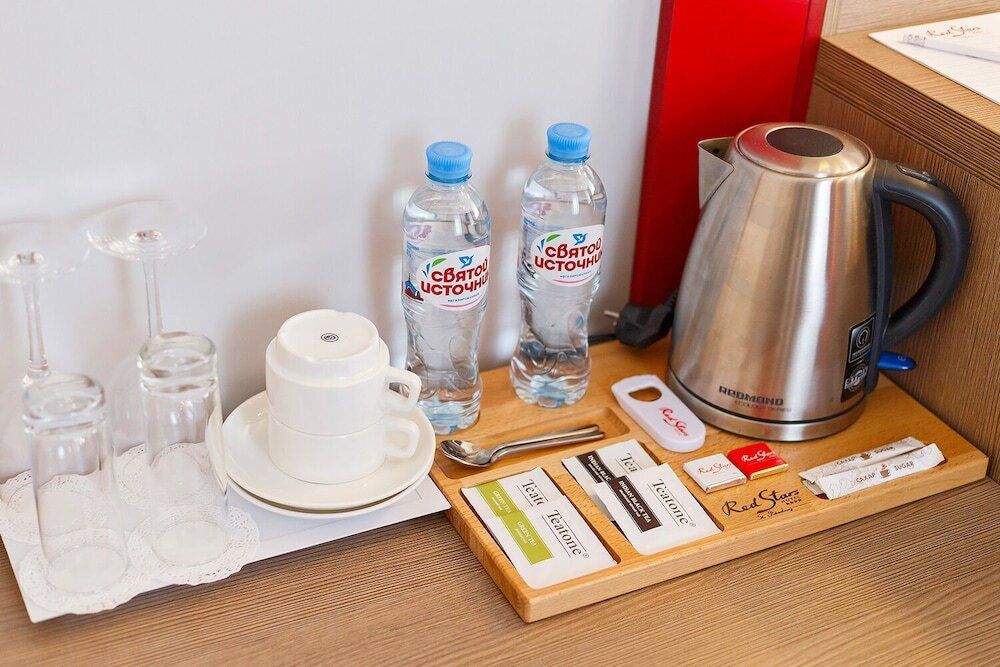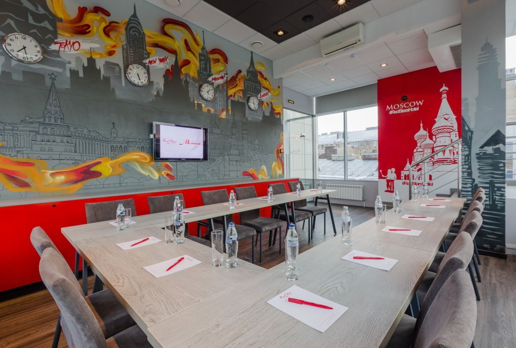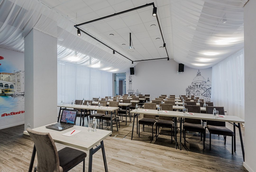 Современные и классические формы, отделка зеркалами, стильный, но в то же время уютный и лаконичный интерьер. Помимо завтраков в формате «Шведский стол» в ресторане Red Stars сервируются обеды и ужины по сет-меню, которые можно включить в стоимость проживания. Меню A la carte удивит вас оригинальностью подачи блюд и их неповторимым вкусом.