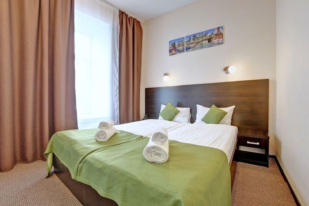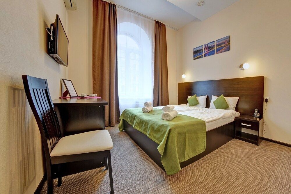 Путешествие с паройУютно и не дорогоВообщем гостиница достойная для вашего проживания. Не большая уютная гостиница на Невском проспекте. Не далеко от всех видов транспорта и разных направлениях. Рядом есть кафе и магазины. Мы заказали комнату Делюкс с джакузи. Номер не особенно отличается от обычного номера только тем что есть джакузи и то слабо работающее и с ржавыми трубами. Завтрак приносят в номер по предварительному заказу. Обслуживающий персонал вежливый и приветливый.