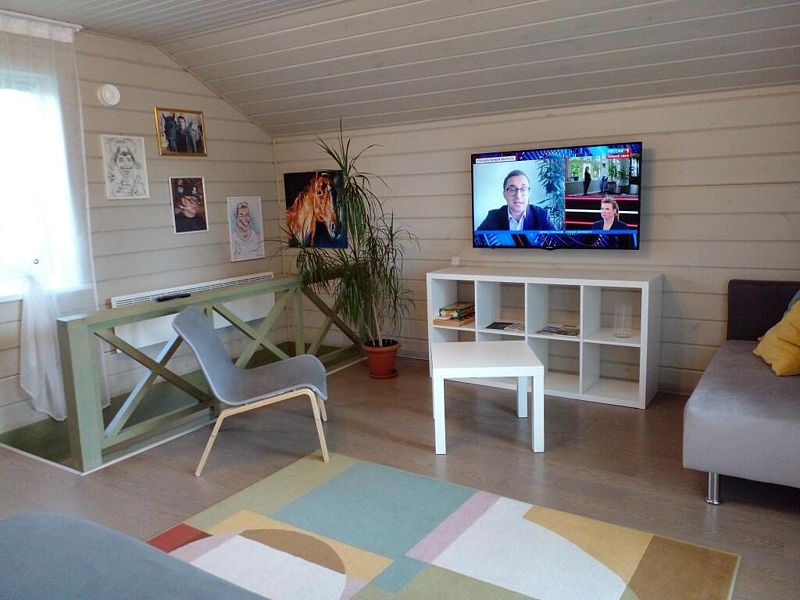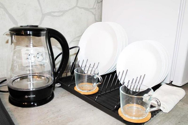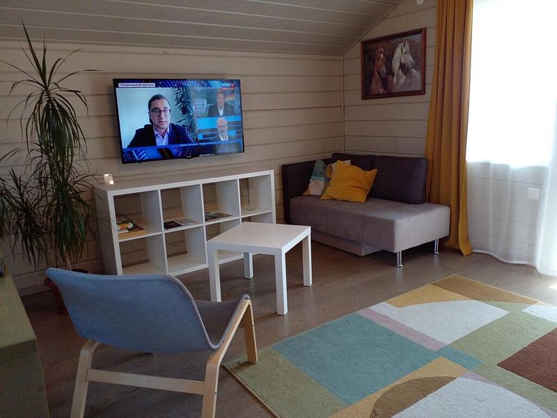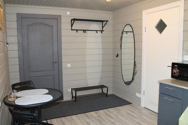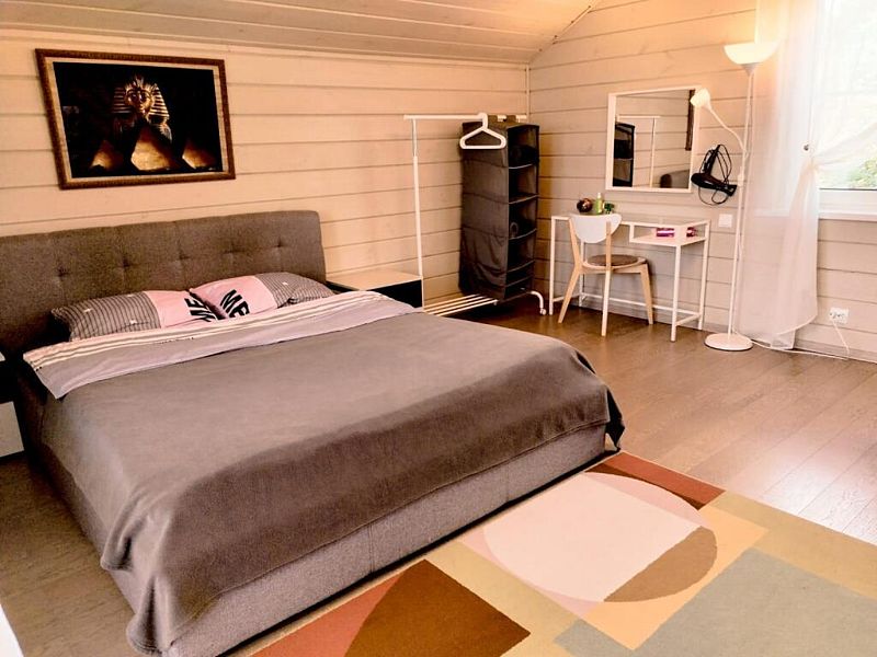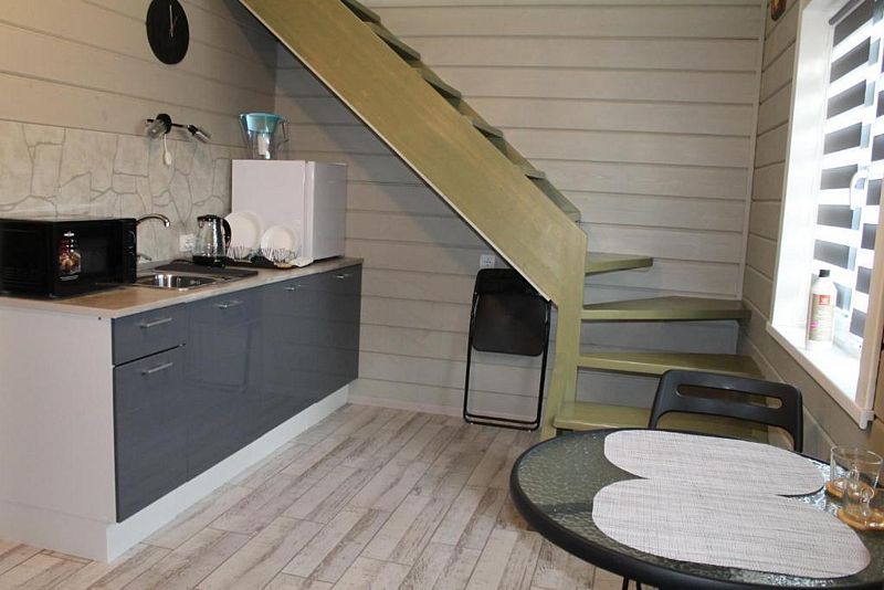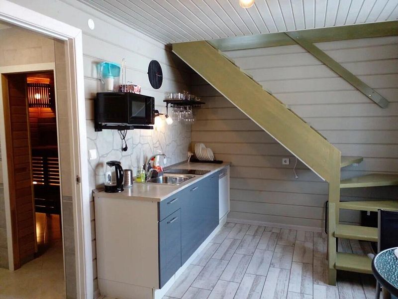 Для комфортного путешествия в стоимость проживания входят высокоскоростной wi-fi, телевизор, холодильник, микроволновая печь, чайник, электрическая плита, набор посуды, двуспальная кровать (160x200 с удобным ортопедическим матрасом), одноместный диван (90х210) комплект постельного белья, шапочки и простыни для сауны, полотенца, мыло, шампунь, гель для душа, сушилка для белья. В кухне-гостиной по всему периметру полы с подогревом. Второй этаж отапливается конвектором.