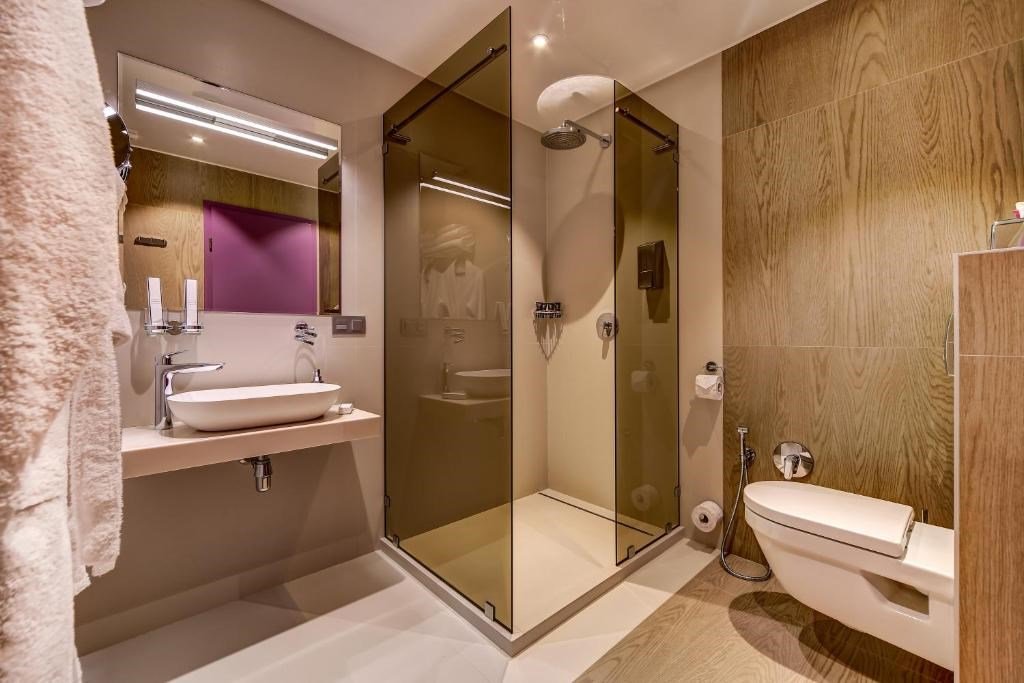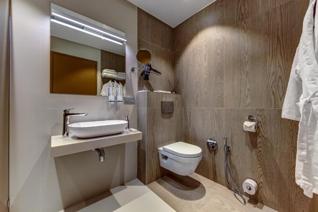- с ванной или душевой кабиной