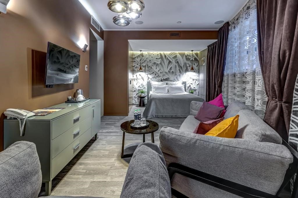 Бутик-отель «Графтио» предлагает своим гостям уникальное местоположение в Петроградском районе Санкт-Петербурга, в непосредственной близости от таких популярных достопримечательностей, как концертная площадка «А2», стадионы «Санкт-Петербург» и «Петровский», а также Эрмитаж.