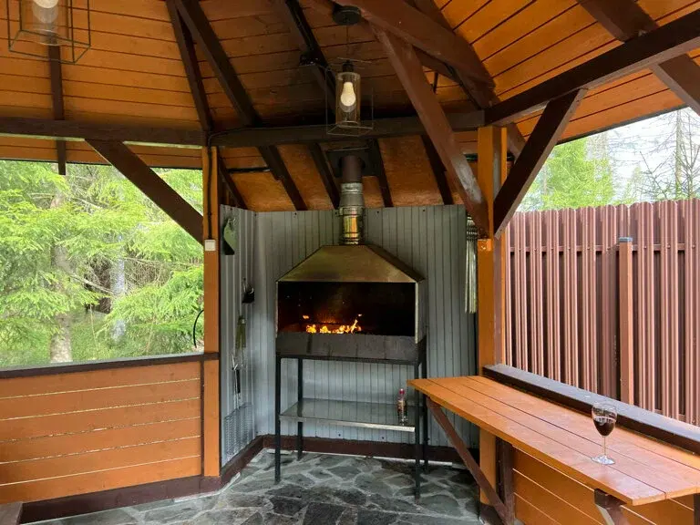 Гостям доступен полный комплект мангальных принадлежностей (мангал, шампуры, решетка)