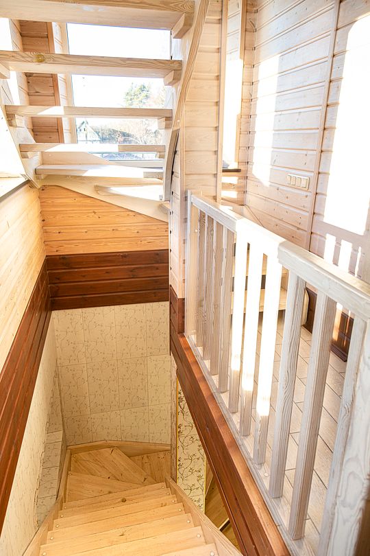Дом состоит из четырёх этажей. На первом этаже находится гостиная, совмещенная со столовой, а также санузел с ванной и прачечная. На остальных этажах располагаются спальни, туалеты и небольшие кухни.