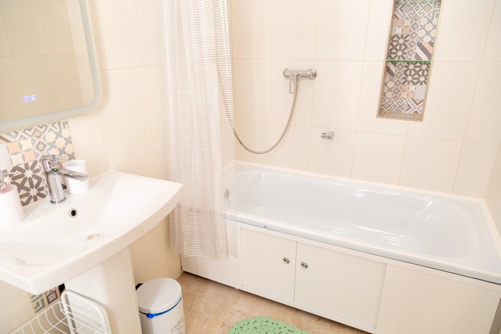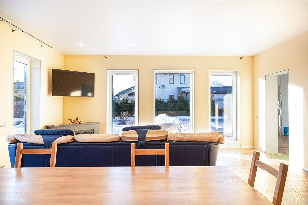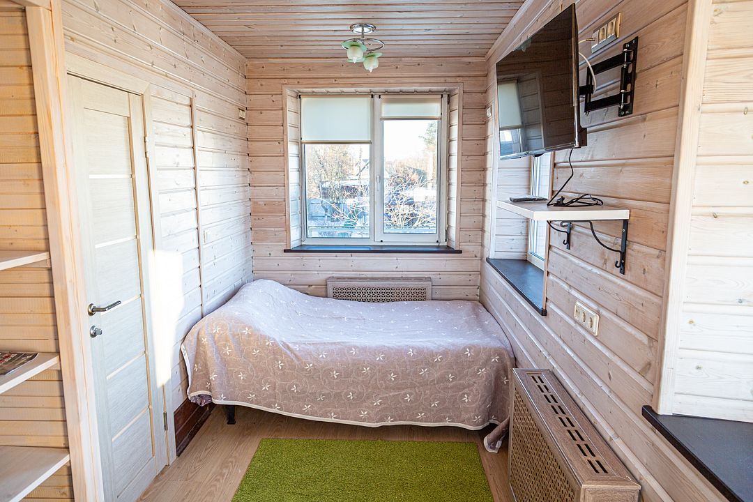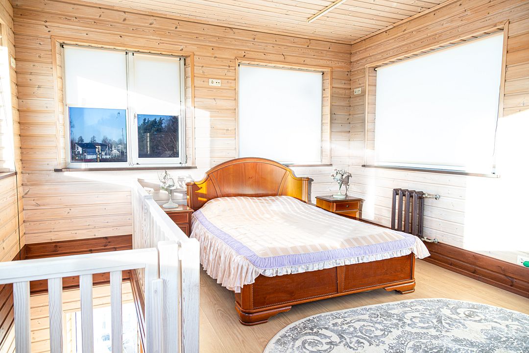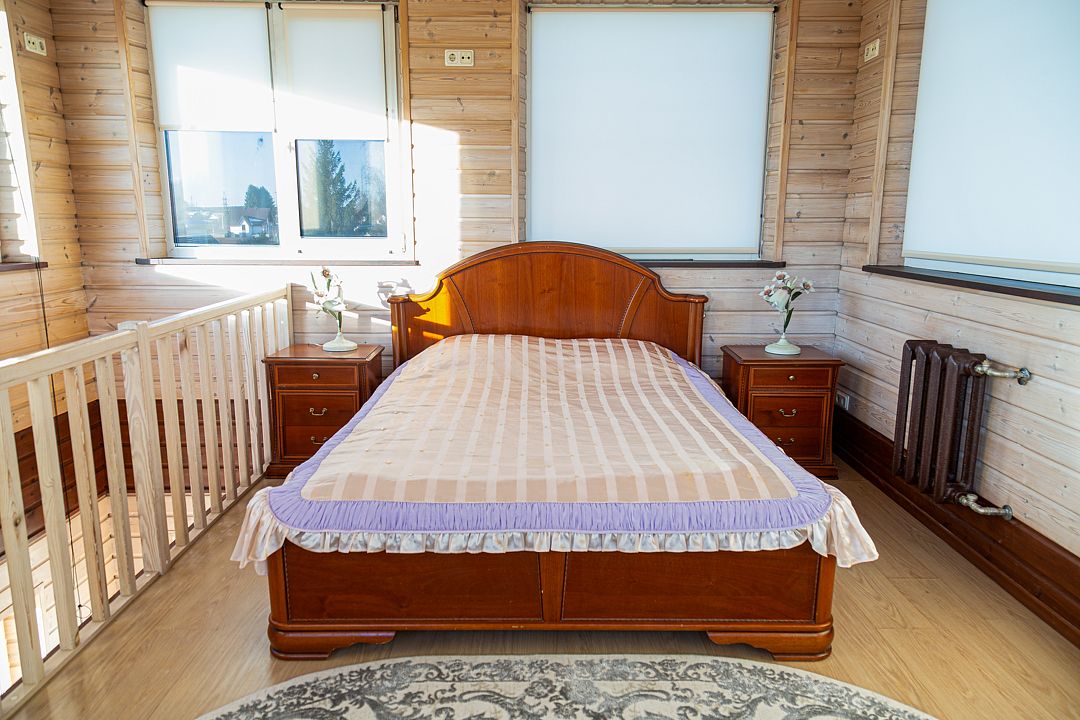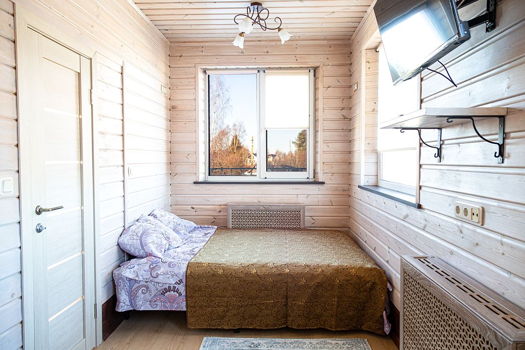 Всего в доме три спальни, в каждой из которых установлена двуспальная кровать. При необходимости в гостиной можно организовать дополнительное спальное место.