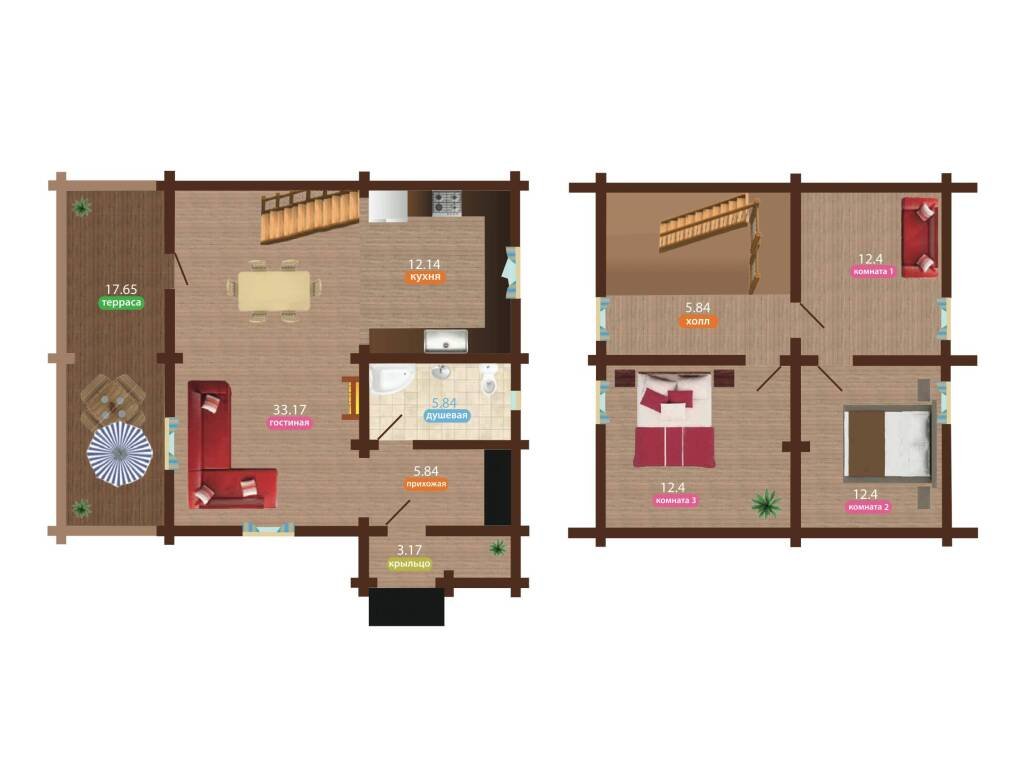 Двухэтажный коттедж с камином и сауной, обеспеченный всеми необходимыми удобствами для комфортного проживания.