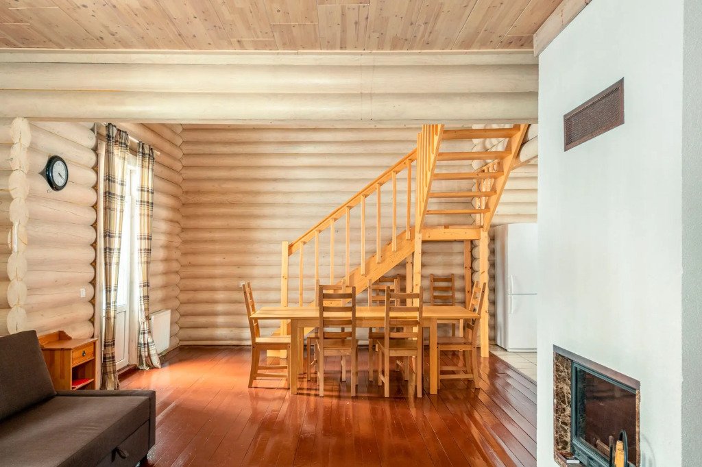 Гостей базы отдыха «Громово Парк» ожидают деревянные двухэтажные коттеджи различной вместимости с каминами, обеспеченные всеми необходимыми удобствами для комфортного проживания.