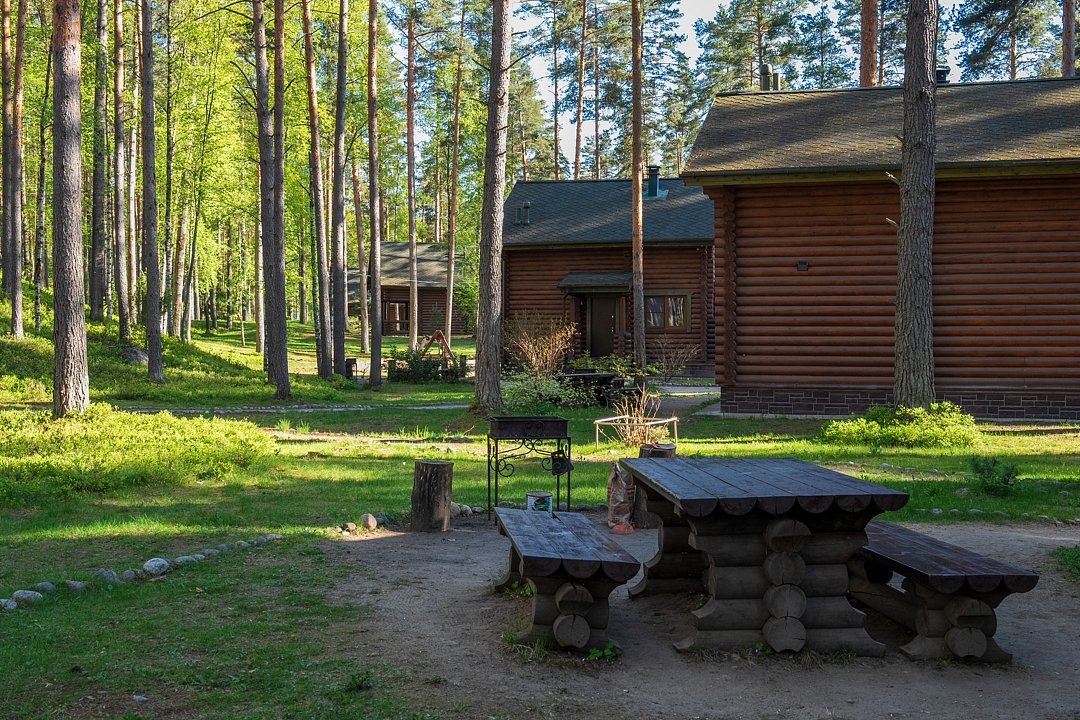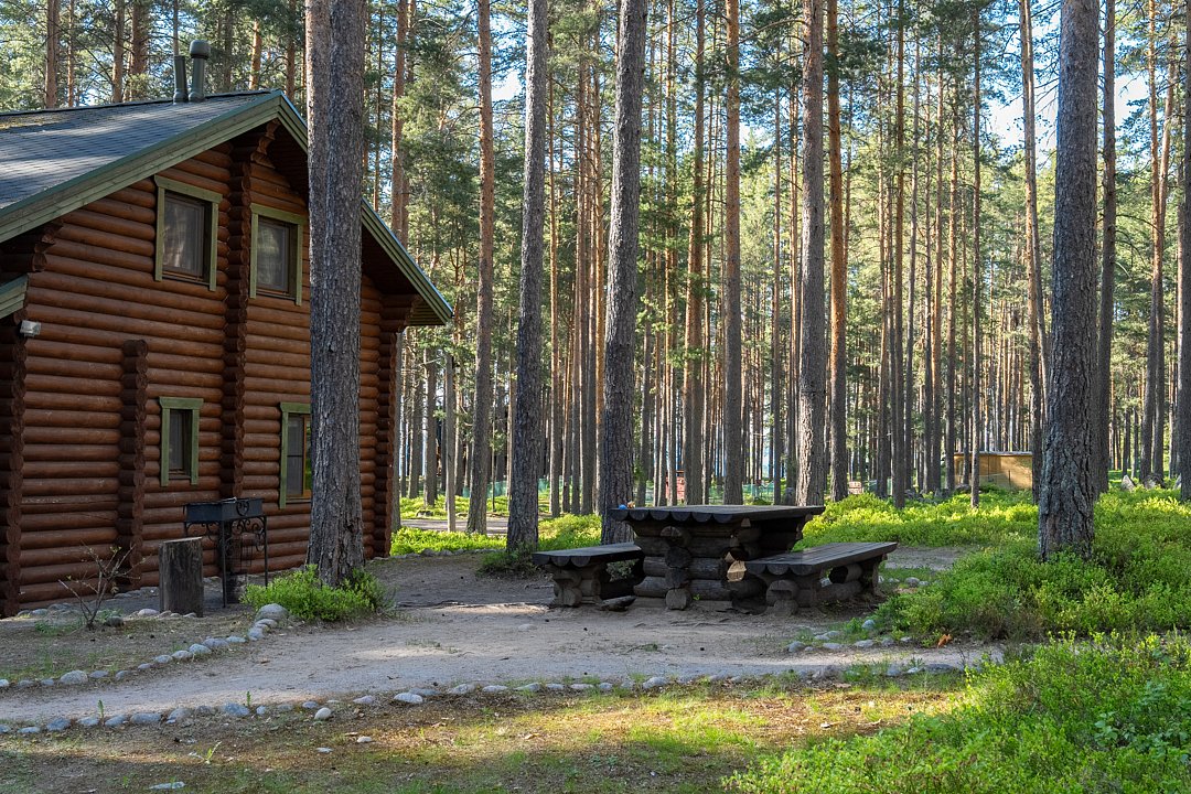 Путешествие с семьейОтдых в лесу с комфортомЕздили большой семьей: и родители, и дети. Место очень красивое! Сосновый бор, 2 озера, грибы и ягоды: природа во всей красе! Коттеджи просторные (у нас на 7 взр + ребёнок 3 года был домик с 3 спальнями - удобно). Все необходимое есть, обстановка простая, мы ехали за красотой вне дома:) На улице мангал (вечером делали шашлык, а, пока мы спали утром, нам уже мангал начистили, мусор выкинули). Баня класс: на дровах, на берегу озера: прыгали с пирса, пили мятный чай на открытой террасе.