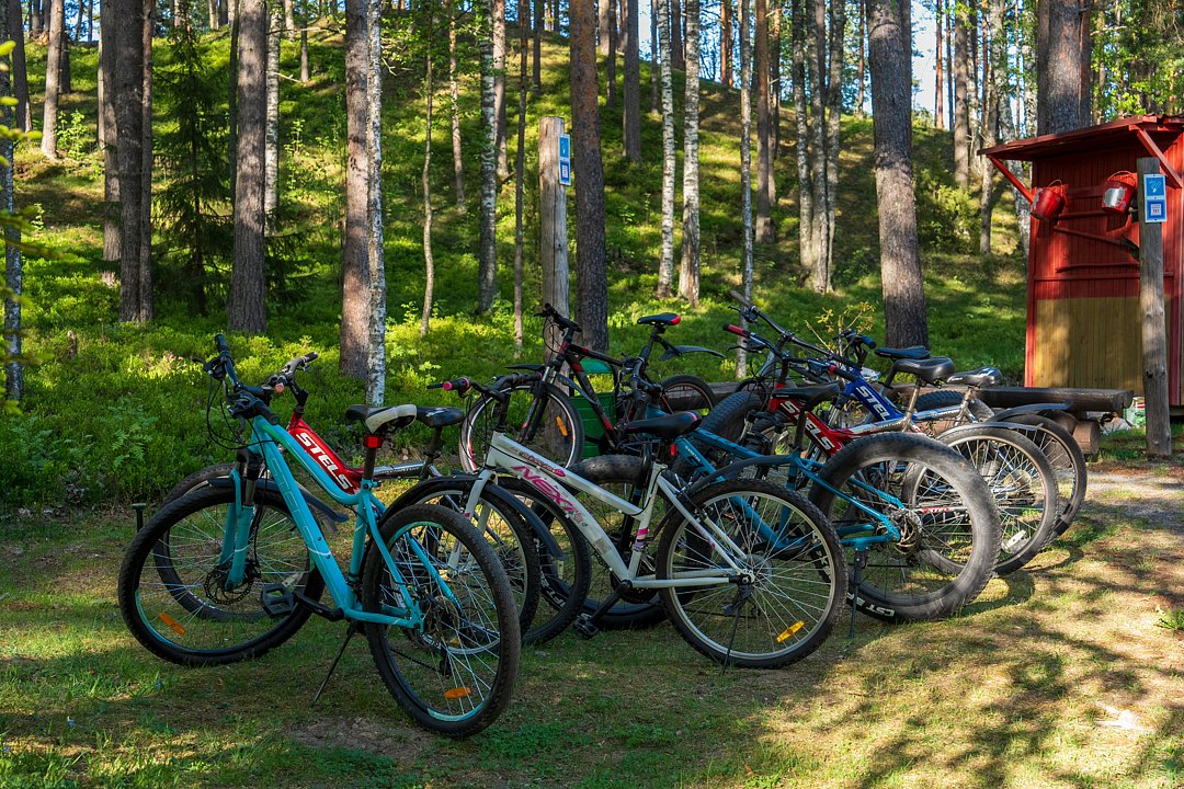 На территории базы работает прокат лодок, катамаранов, велосипедов и лыж в зимний сезон.