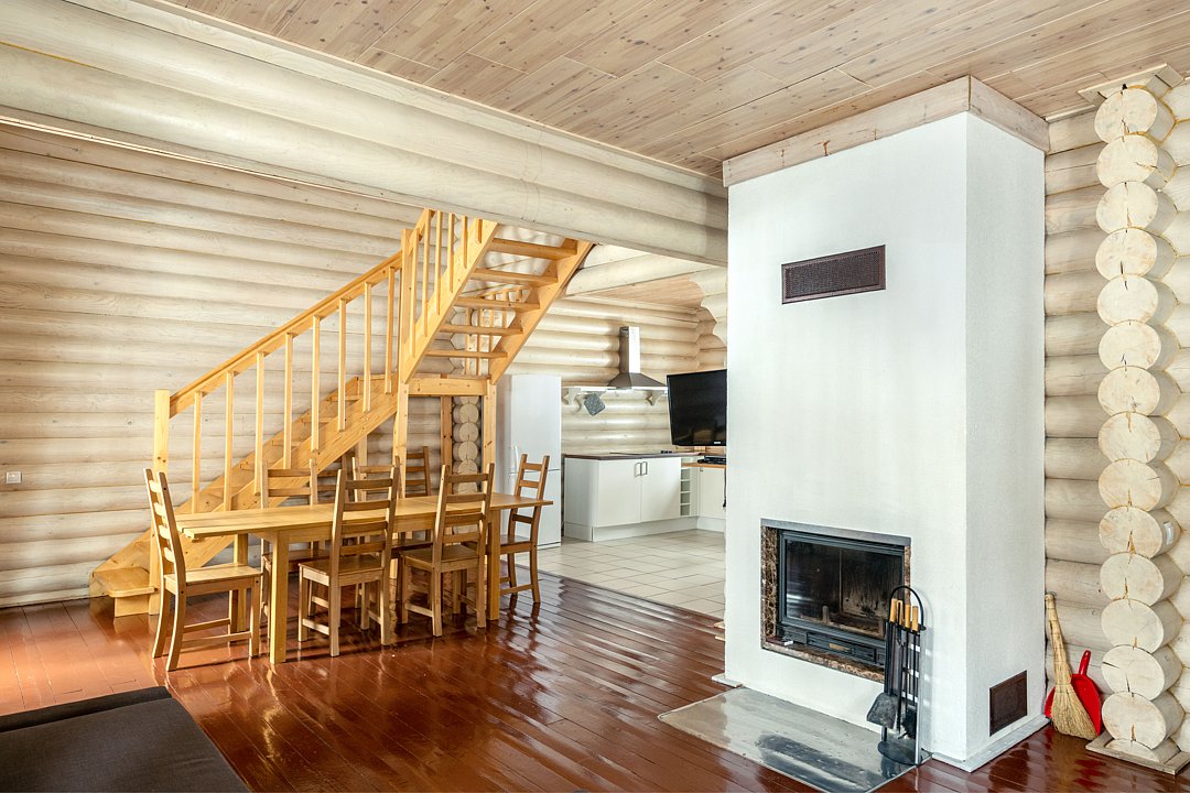 Двухэтажный коттедж с камином, обеспеченный всеми необходимыми удобствами для комфортного проживания и отдыха.