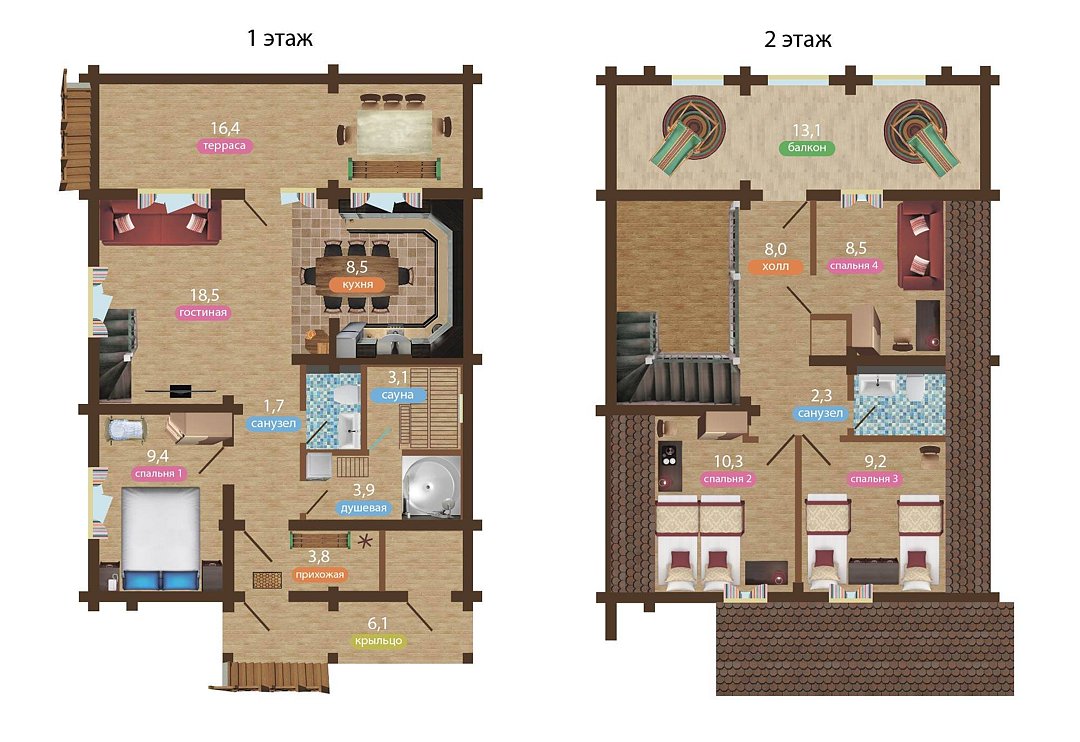130 м2 · 8-и местный коттедж