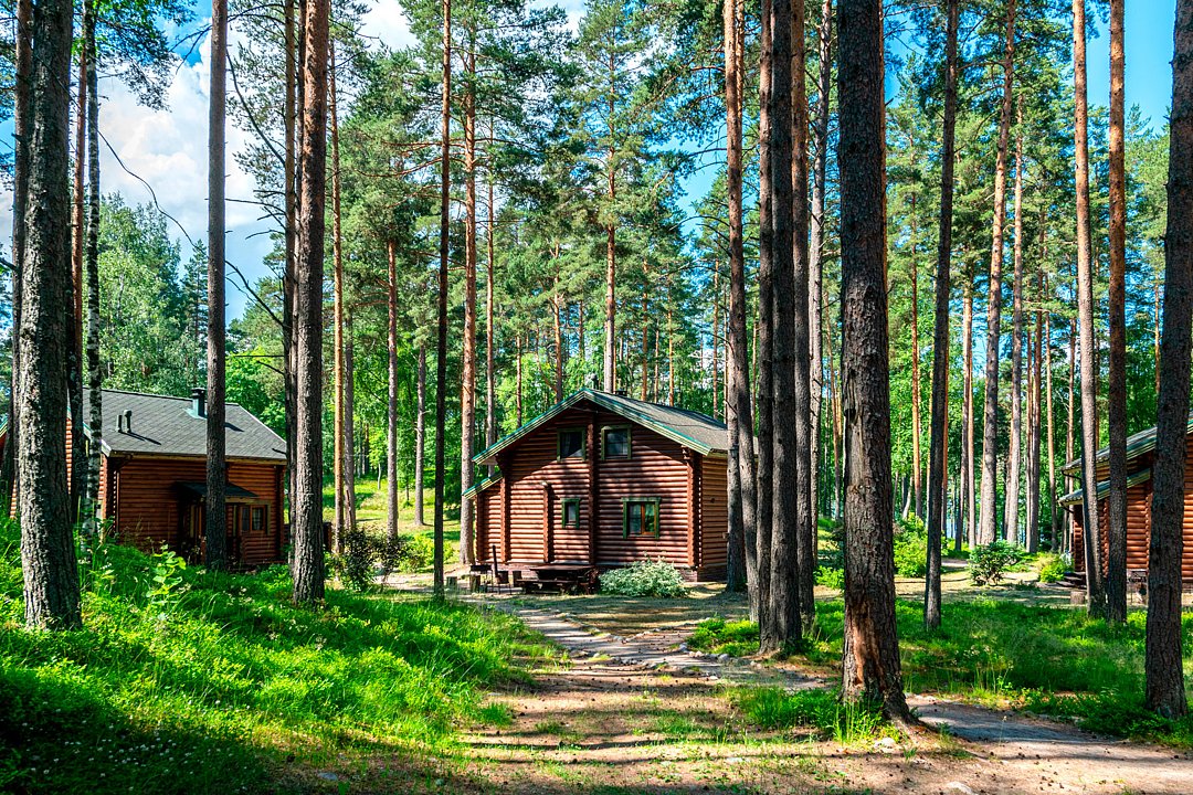 Вас ждут уютные деревянные коттеджи, окруженные вековыми соснами и кристально чистыми водами двух озер.