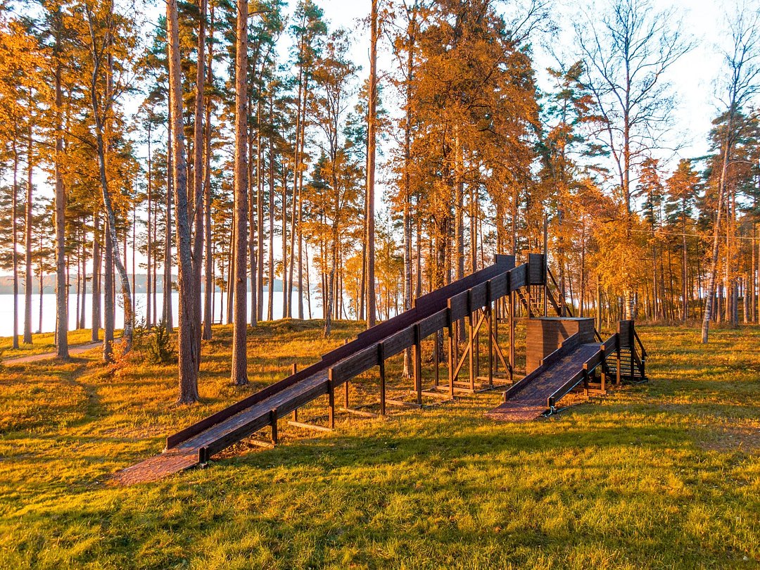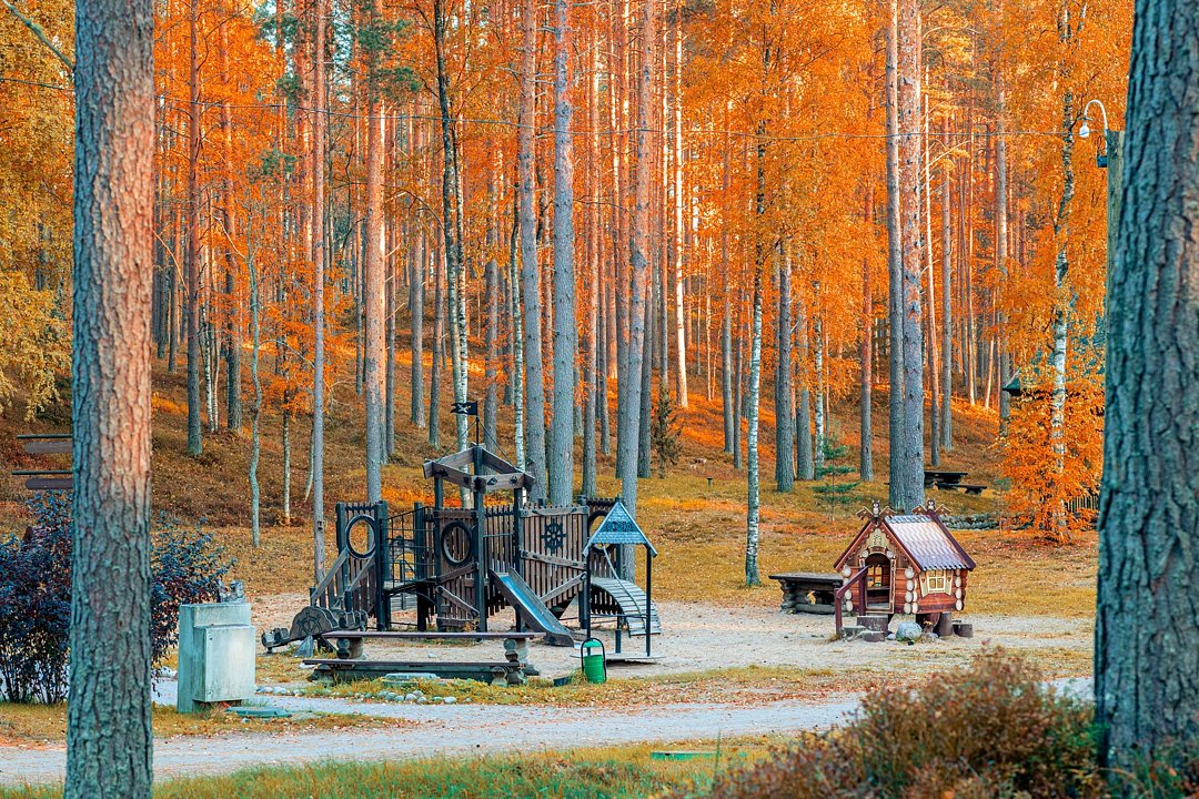 Вокруг тишина, запах хвои и лесные виды. Народу мало для такой территории, можно с уютом посидеть на берегу озера с чашкой кофе. Отличное место для отдыха от города на выходные!