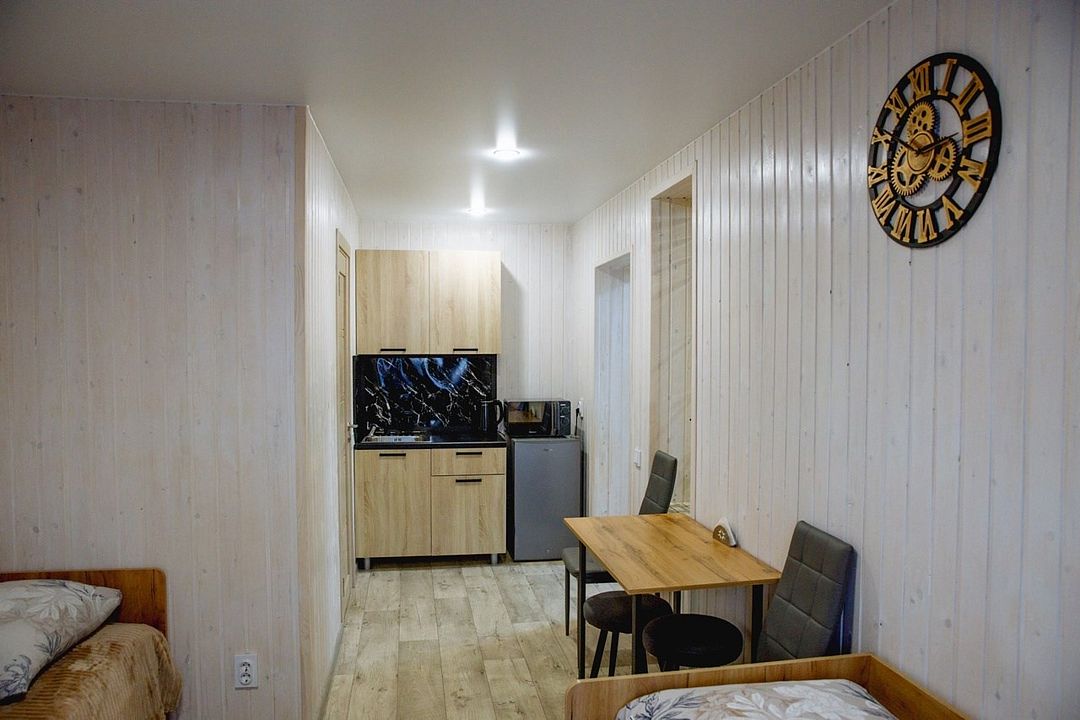 Путешествие в одиночкуДешево и сердито.На рецепции очень милый персонал, быстро заселили. Отдельное спасибо администратору Галине! Очень добрая интересная женщина). Теперь о домике. В комнате очень уютно, две раздельные кровати, телевизор, шторы, много розеток. Зеркало правда висит в самом углу, и из-за тусклого освещения, мне, как женщине не очень удобно краситься)) Не совсем удобные подушки, несгибаемые, скажем так. В комнате тепло. Но. Как и все скажу - что слышимость просто адская, все разговоры, каждый скрип на кровати и храп очень сильно напрягает, особенно ночами. Поэтому бируши ( на стойке рецепции) спасут мир! Немного огорчило, что ручки все расхлябанные, в уборной приходилось сильно попотеть, чтоб закрыть дверь. Душевая кабина современная, но мне, как несильно продвинутому человеку с ней тяжело было разобраться. Расположение домика хорошее (Старый город) - вокзал рядом, много магазинчиков и кафе.
