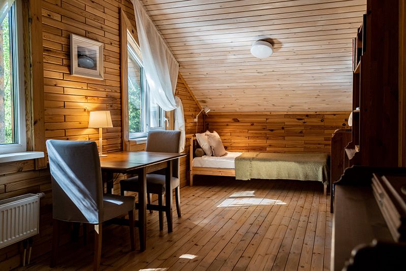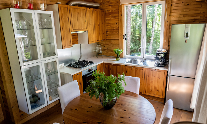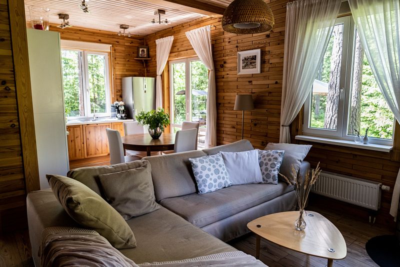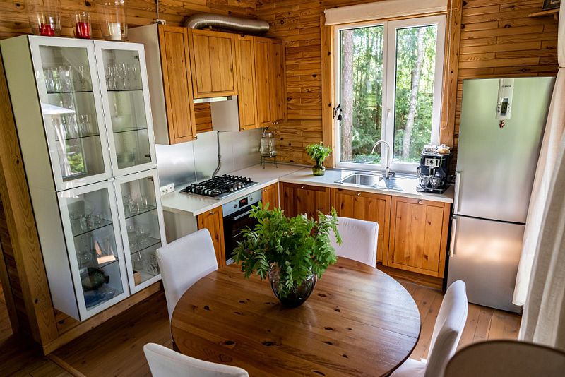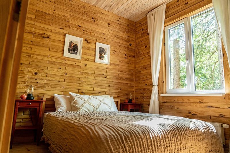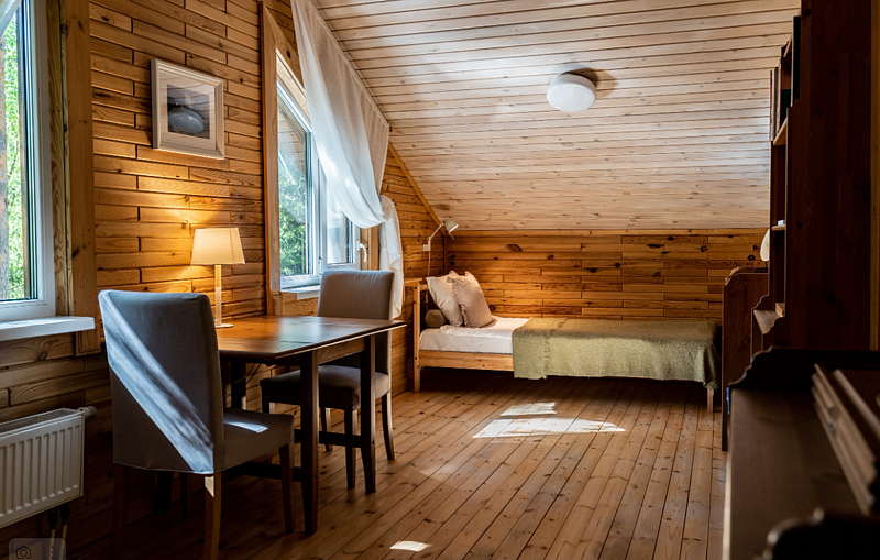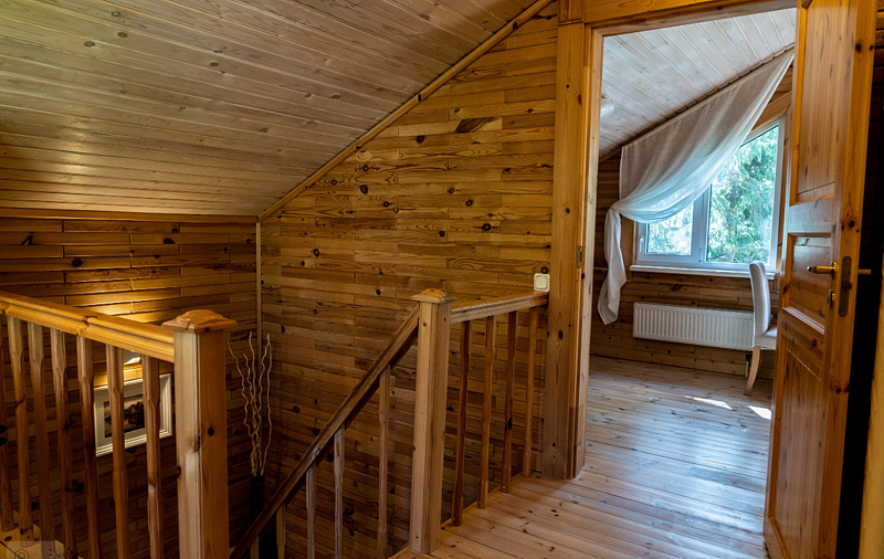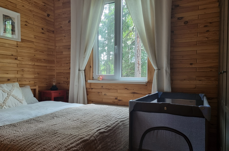 В уютном доме, построенном на участке 20 соток с сосновым лесом, находится три спальни: две с двуспальными кроватями, одна с двумя односпальными, кухня с столовой и ванная комната. Спальных мест - 6 (комфортно) + можно поставить раскладушку за дополнительную плату.