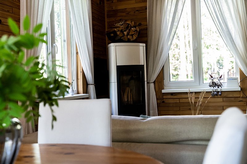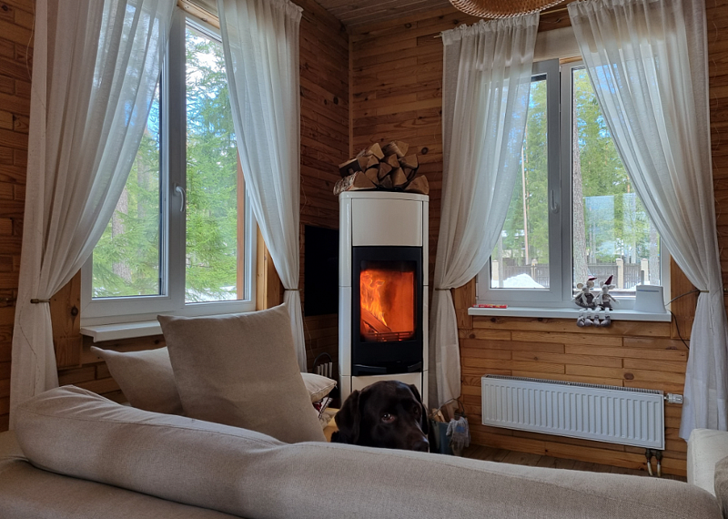 Коттедж расположен в охраняемом коттеджном поселке. Коттедж оборудован камином, стоит в окружении сосен.