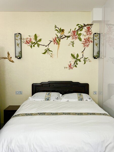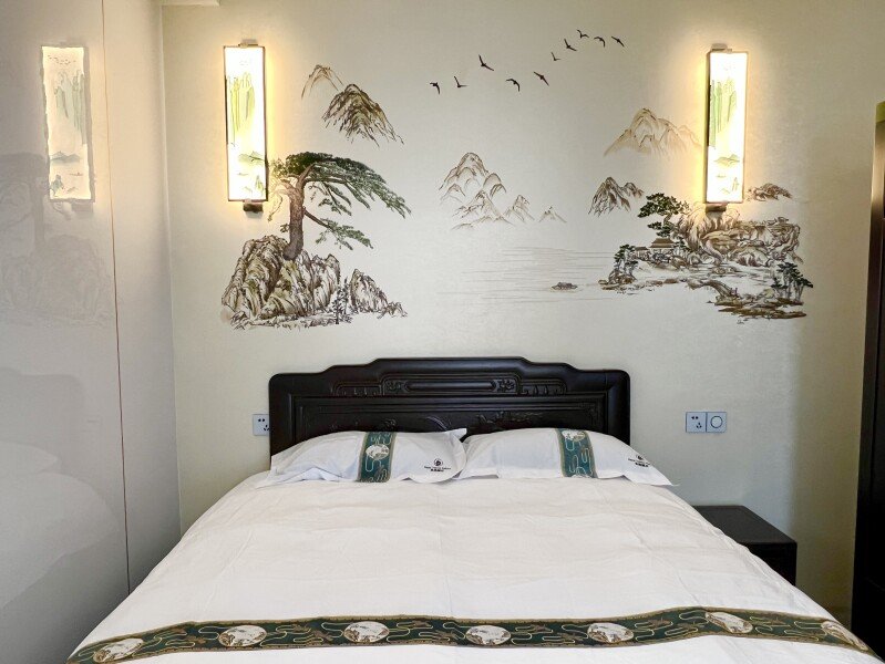 Все кровати в китайском стиле укомплектованы высококачественными матрасами и постельным бельем из китайского хлопка, соответствующими стандартам пятизвездочных отелей, чтобы гарантировать вам исключительный отдых. Насладитесь роскошным проживанием, где традиционный китайский шарм встречается с передовыми современными технологиями.