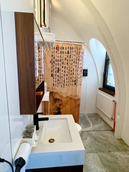 Для вашего удобства подготовлены основные приправы (масло, соль, соевый соус, уксус), чай, сахар и полный набор посуды для чайной церемонии. Максимальный комфорт: В каждой комнате есть собственная ванная комната, оснащенная умным зеркалом с подсветкой, многофункциональным умным унитазом (с пультом ДУ для биде, сушки и других функций), современной душевой системой и эффективной вытяжкой.