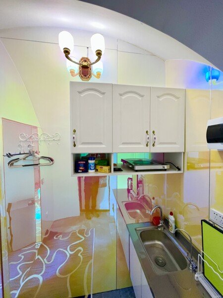 Номер полностью укомплектован: беспроводной интернет, телевизор, мини-холодильник и полностью оборудованная мини-кухня. На мини-кухне есть все необходимые инструменты и основные приправы для приготовления пищи, чтобы вы могли с легкостью проявить свои кулинарные таланты.