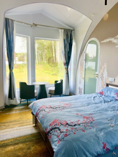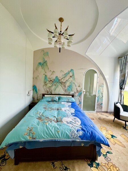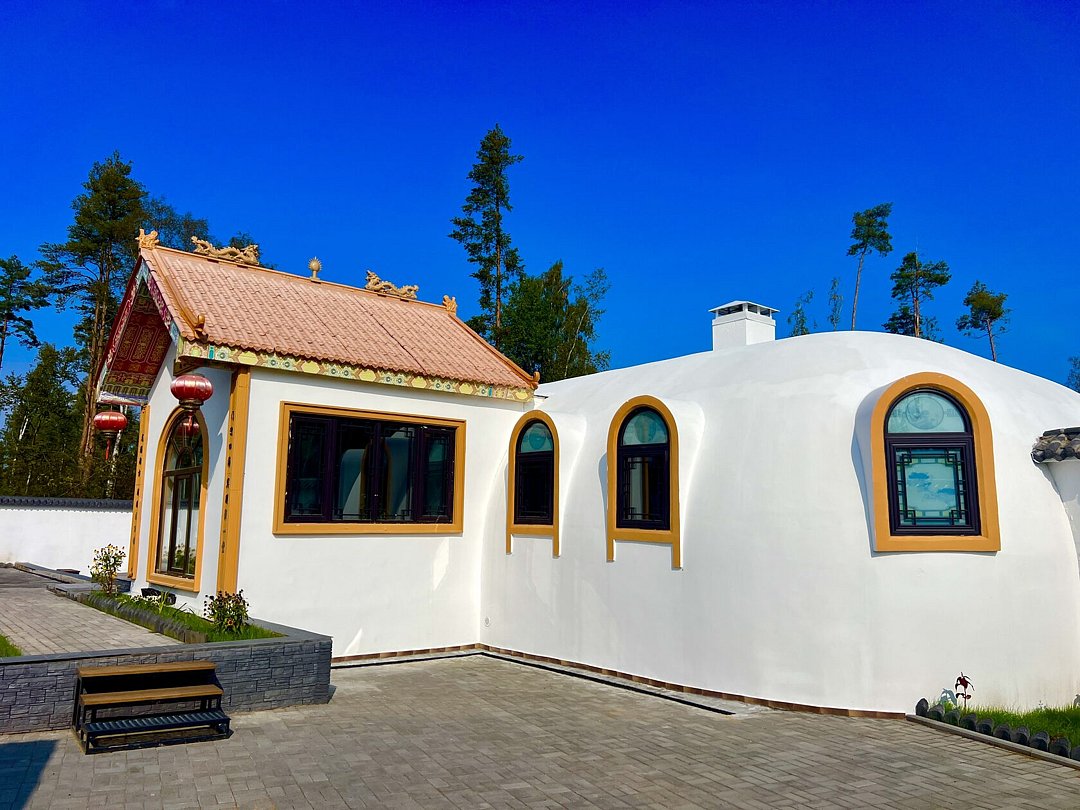 Добро пожаловать в уникальный дом №4 «Харбин». Этот номер выполнен в стиле современного китайского зодчества и привлекает внимание своей уникальной круглой формой.