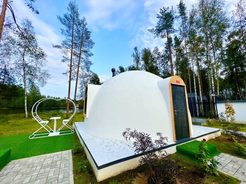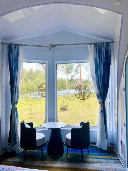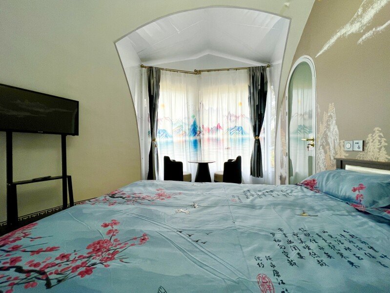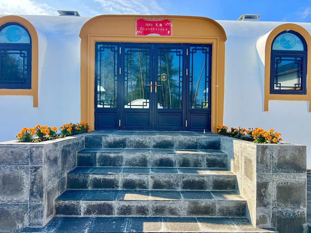 Архитектурная изюминка комплекса — шесть круглых домиков в стиле современного китайского зодчества, каждый назван в честь известного города: Пекин, Шанхай, Вэньчжоу, Харбин, Шэньчжень и Саньи. В них предусмотрено все для комфортного проживания: теплые номера, мультимедиа и быстрый Wi‑Fi, мини‑кухни с холодильниками и частные ванные комнаты с современной сантехникой.
