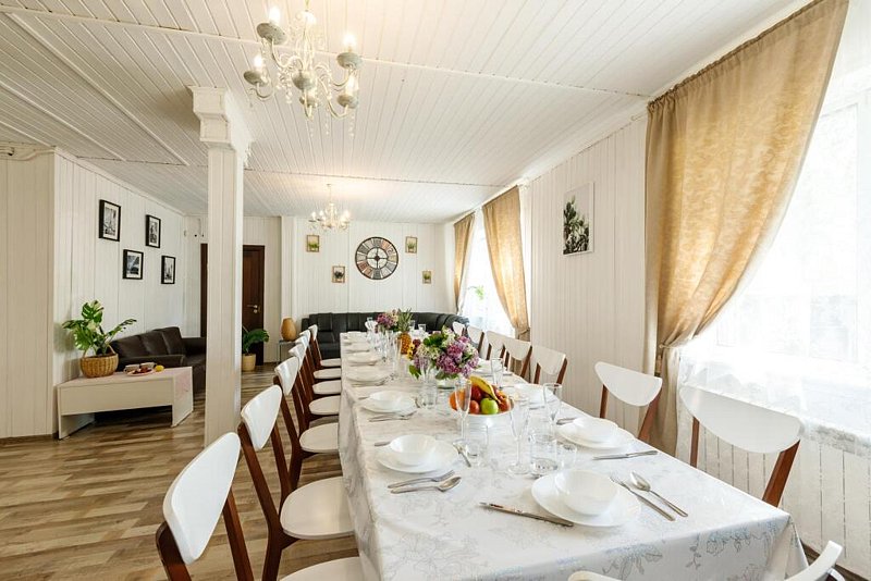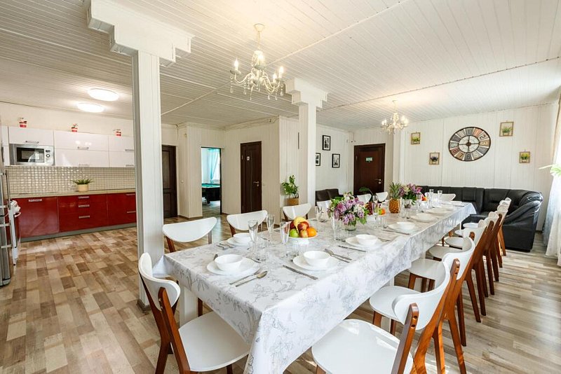 - Кухня с кухонным гарнитуром, укомплектованный кухонной утварью, столовыми приборами и столовой посудой на 20 человек;