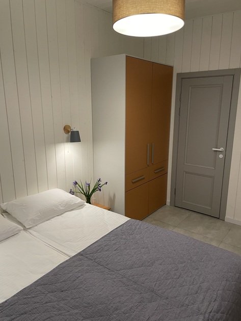 В доме есть все для того, чтобы расслабиться и получить удовольствие от загородной жизни. Дом идеально подходит для проживания четырех человек, возможно размещение шести человек. В доме есть две комфортные спальни, одна из них оснащена персональным санузлом. Кровати в спальне могут быть как двуспальными, так и разделяться на односпальные. Еще два человека могут разместиться на диване в гостиной.