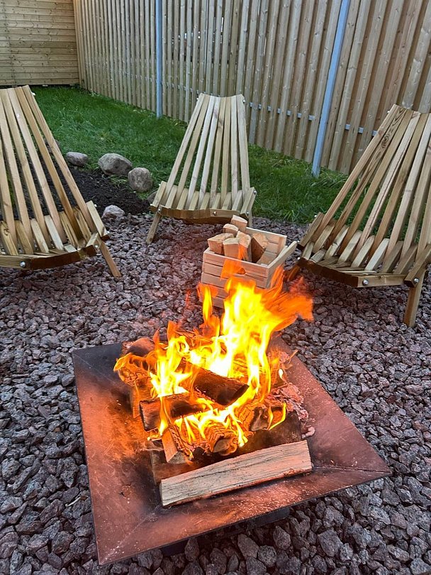 Внутри дома имеется вся необходимая бытовая техника — от посудомоечной машины до капсульной кофемашины, что позволяет гостям наслаждаться комфортным отдыхом без дополнительных хлопот. Кроме того, предоставляются свежие полотенца, постельное белье и средства личной гигиены. В непосредственной близости от дома расположены зона для костра и барбекю, а также многочисленные парковочные места. Для спортивного инвентаря и детских колясок предусмотрено специальное хранилище.