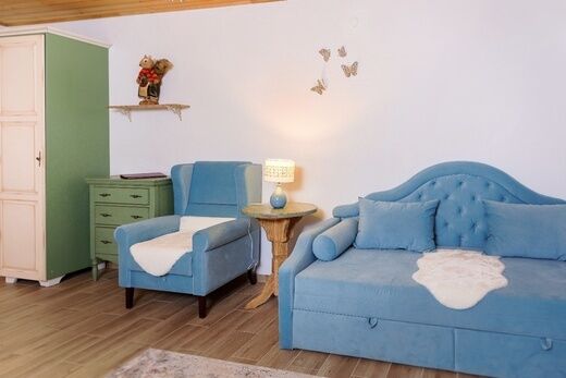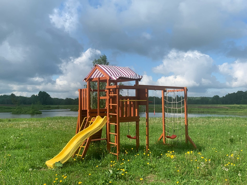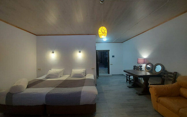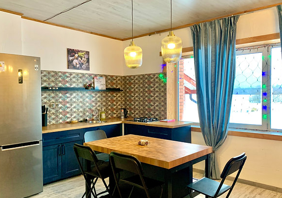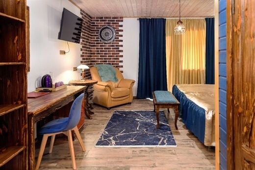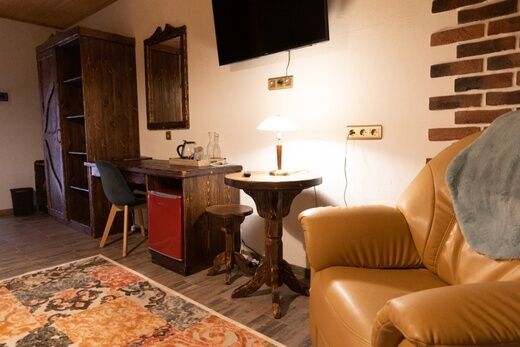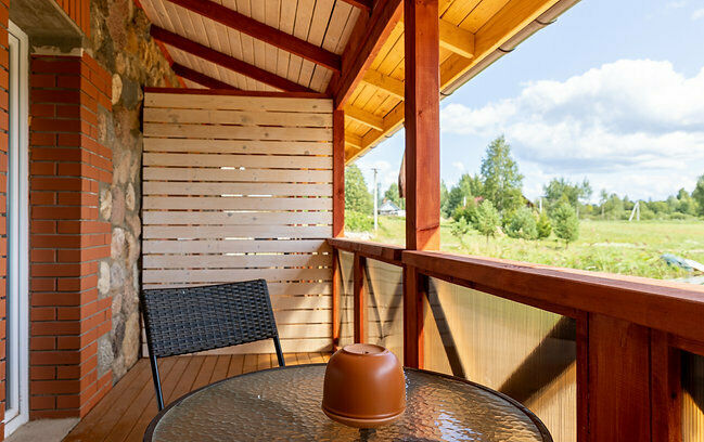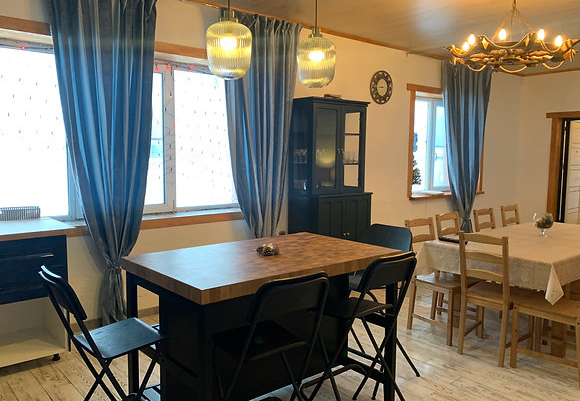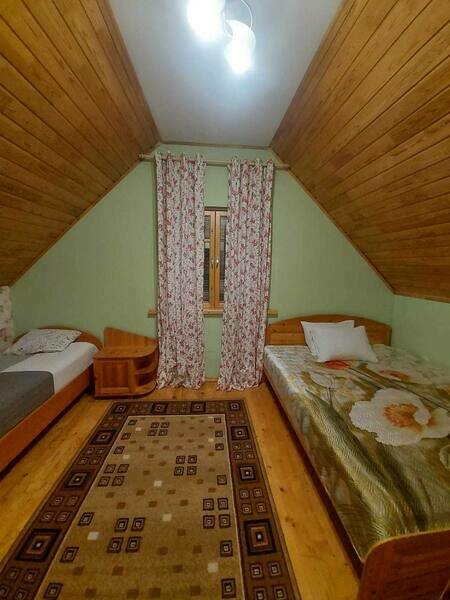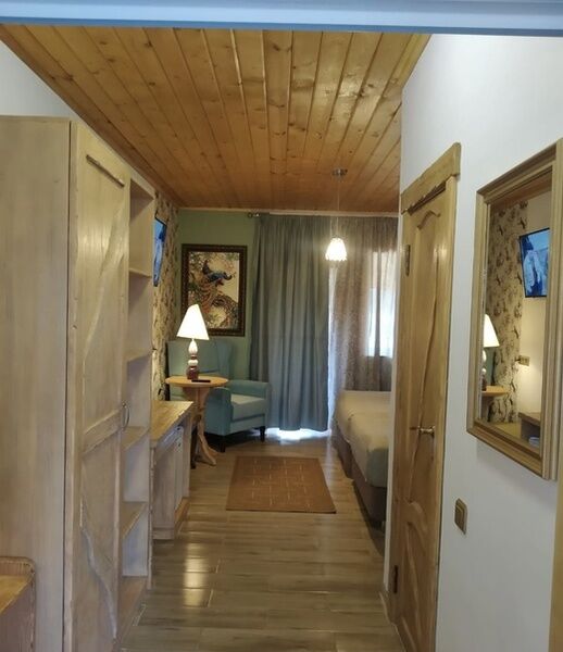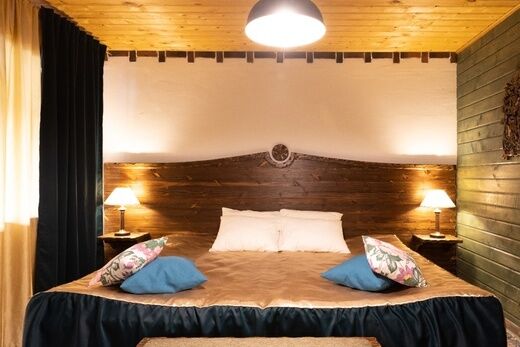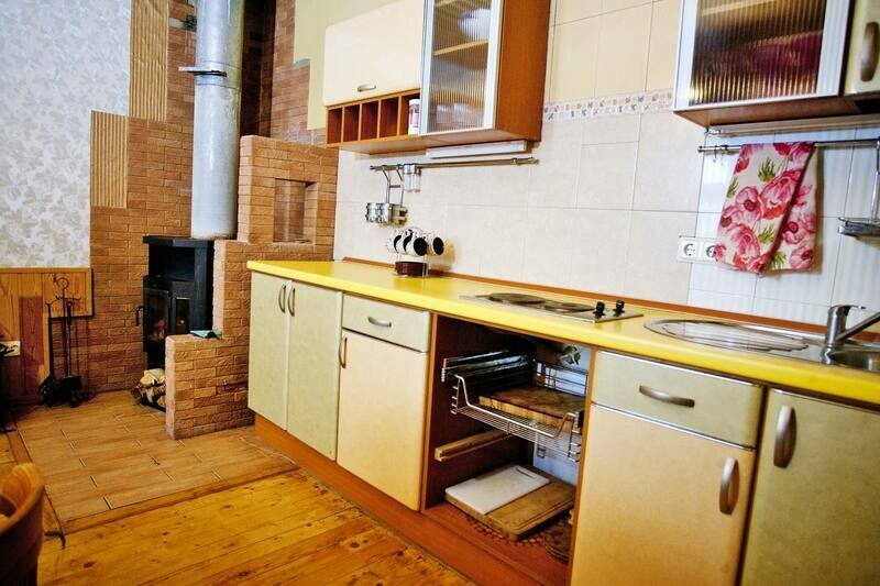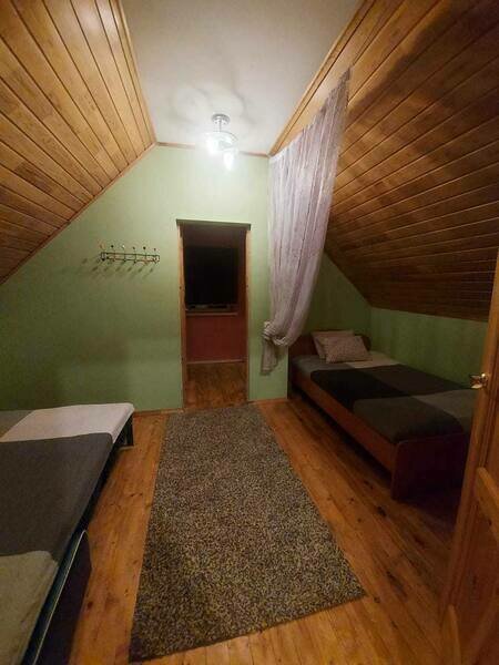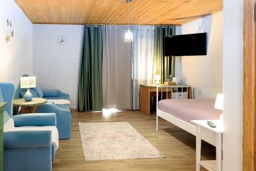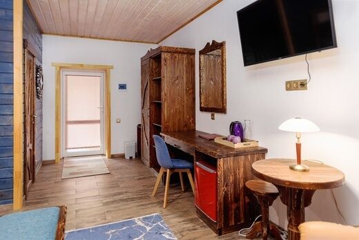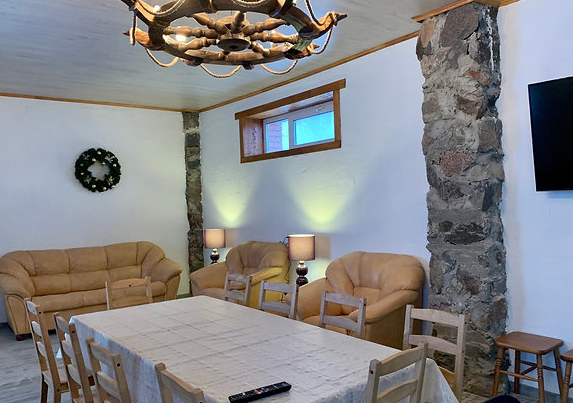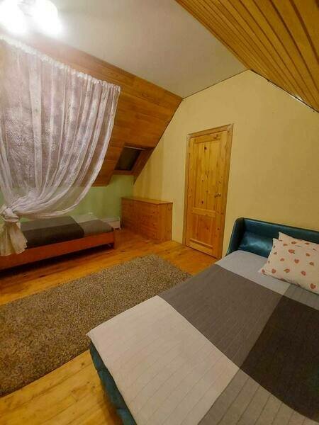 Просторные апартаменты с кухней и залом, отличной подойдет для семейного отдыха за городом. Отдельный вход и выход на террасу. Одна спальня и 2 двуспальных дивана.